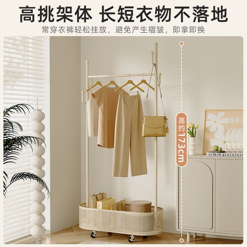 奶油风挂衣架落地卧m室可移动衣篓房间挂衣服衣帽架金属衣架置物