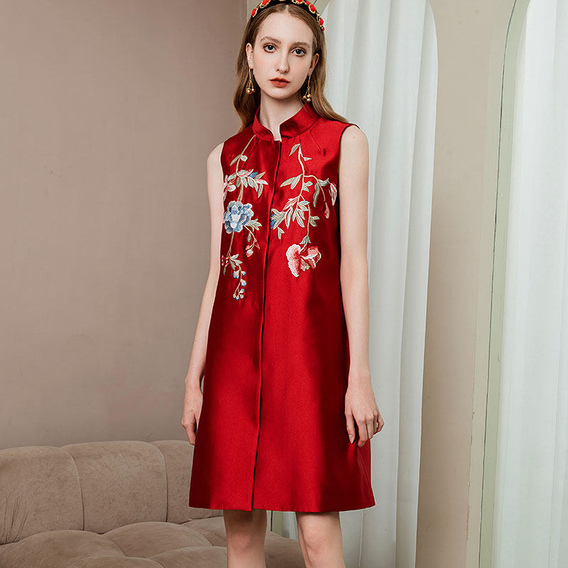 马甲女2025年新款国风新中式民族风刺绣复古立领无袖改良版旗袍