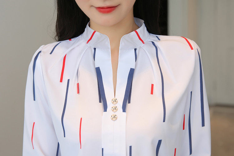 女款春秋新款长袖条纹修身时尚百搭打底衬衣正装立领学生装大码女