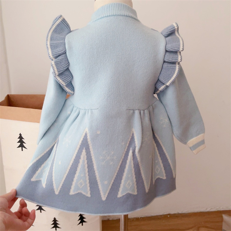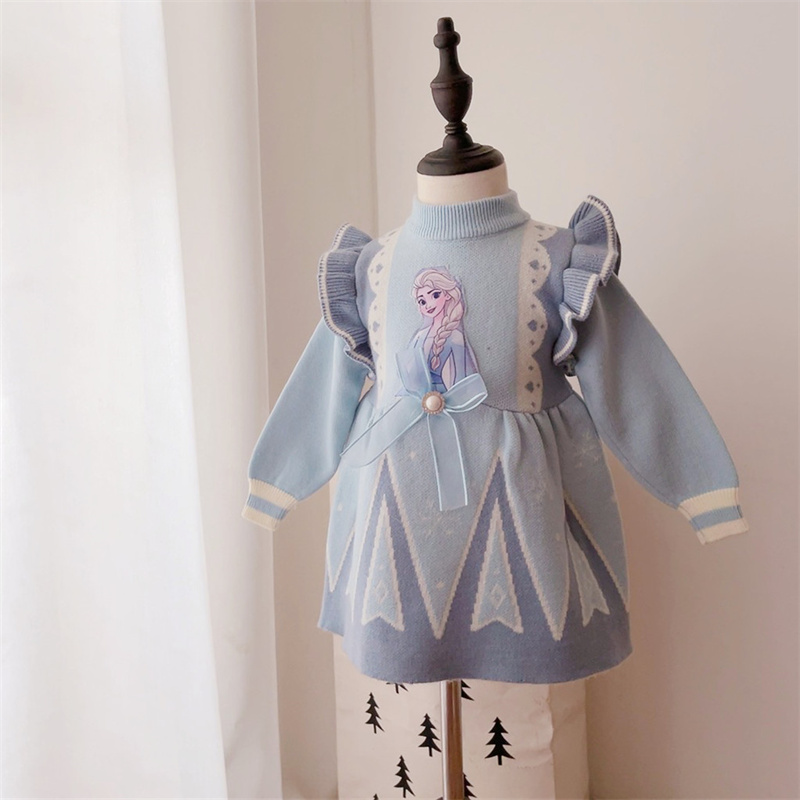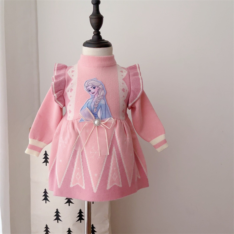 2025女童韩版针织衫儿童冰雪奇缘公主毛衣连衣裙婴幼儿娃娃裙洋气