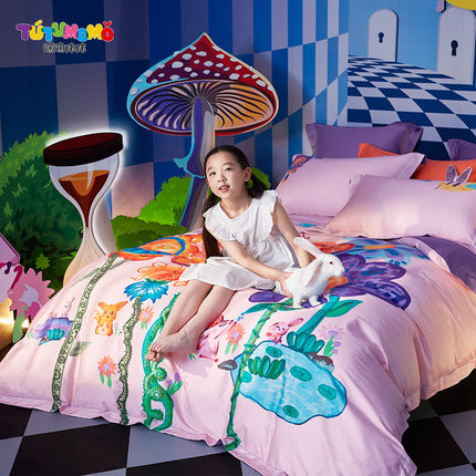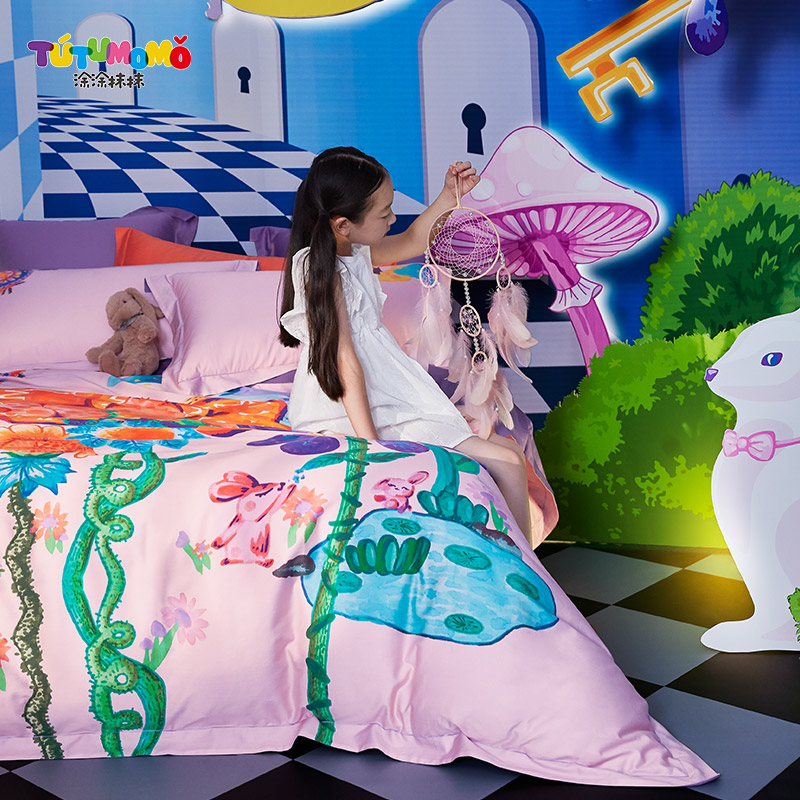 涂涂抹抹儿童四件套女孩公主风高端床品被单床单可爱少女纯棉床笠