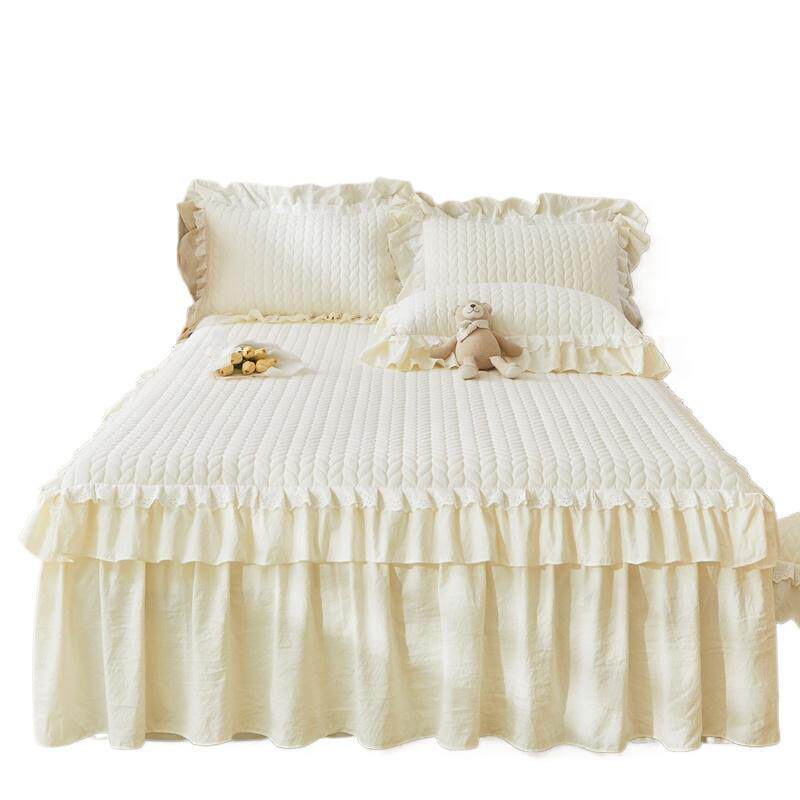 新款ins镂空泡泡玛卡龙水洗棉加厚床裙枕套三件套秘密花园少女心