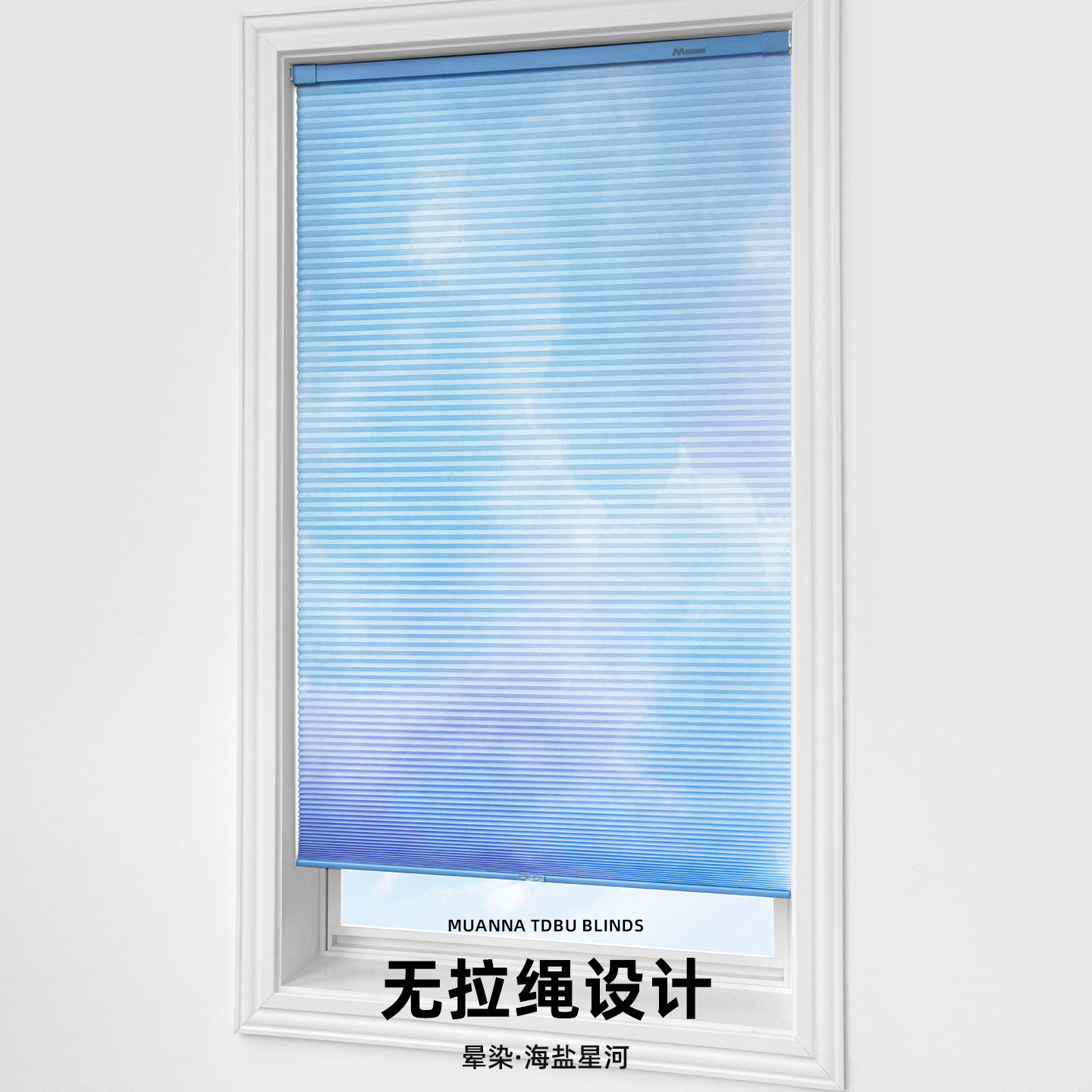 慕安娜渐变晕染免打孔蜂巢帘无绳推拉卧室客厅遮光蜂窝风琴窗帘