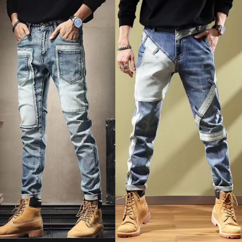 2025春秋季新款高端弹力牛仔裤男士修身小脚休闲复古个性长裤子潮