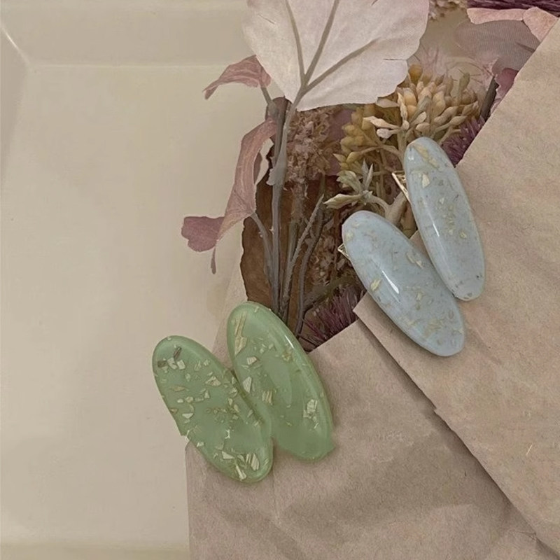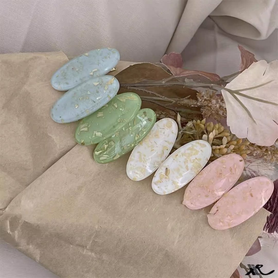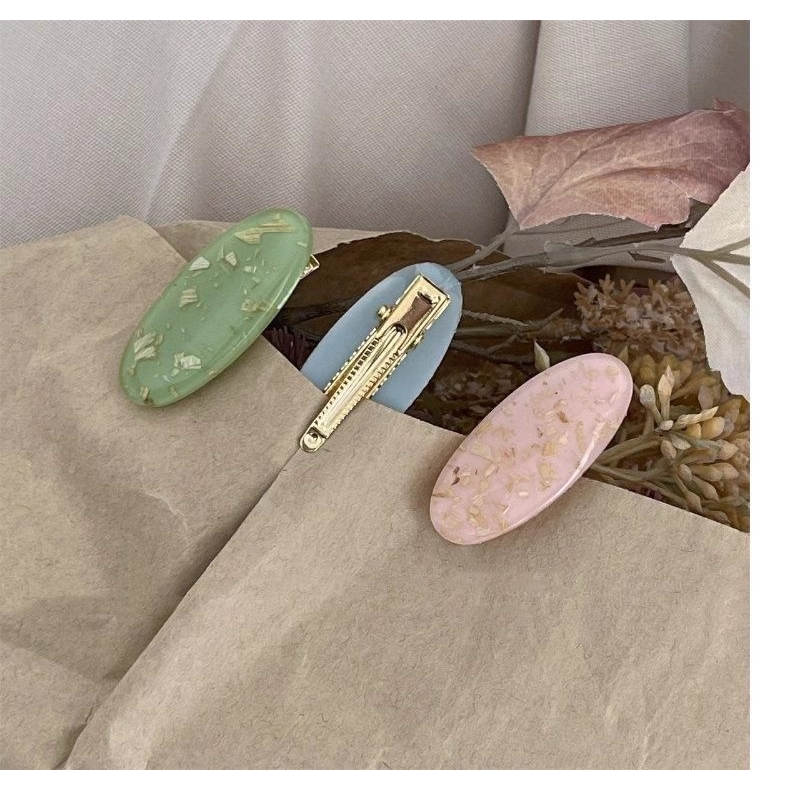 鹅蛋形亚克力鸭嘴夹小清新多巴胺流沙边夹夏季碎发整理神器可爱