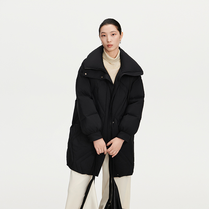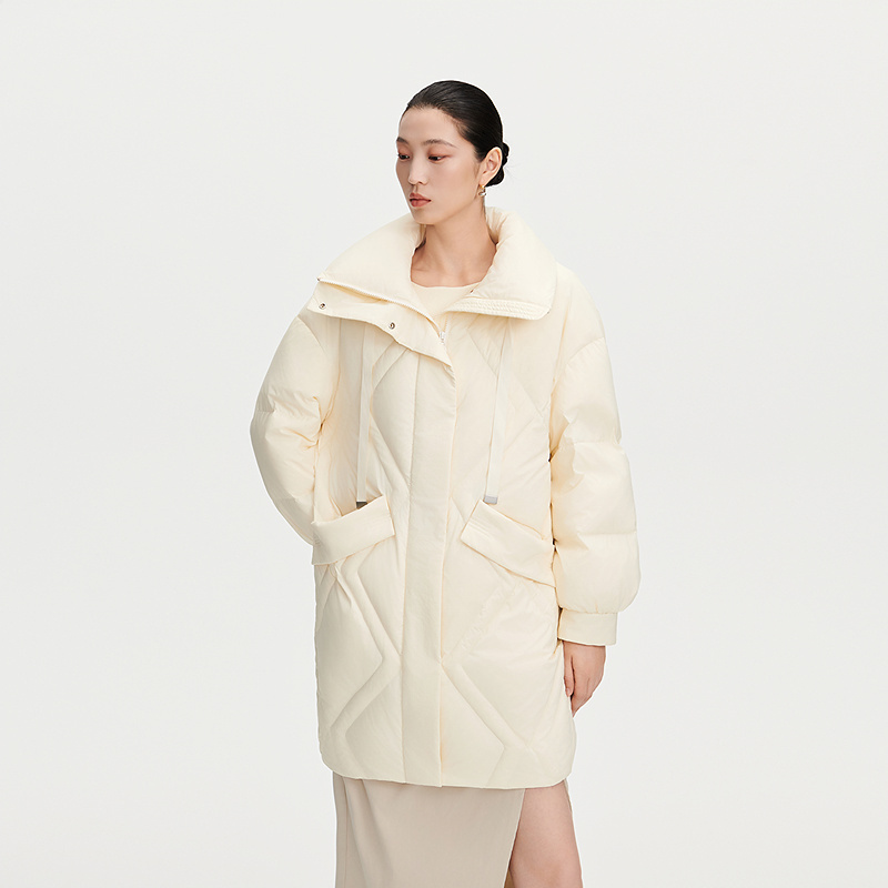 艾莱依商场同款羽绒服菱格绗线显瘦织带设计随性优雅中长款外套冬