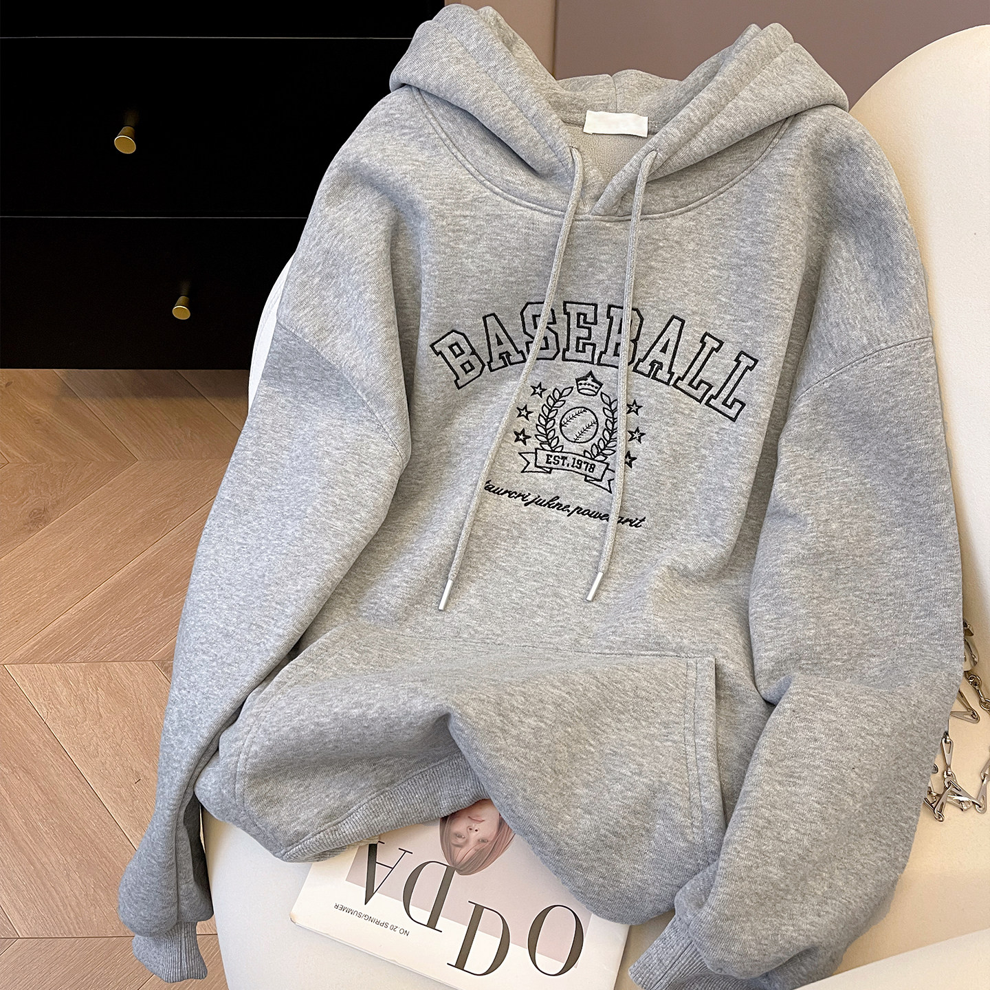 小C家 棒球刺绣卫衣女款2025新款秋冬加绒休闲宽松大版中长款上衣