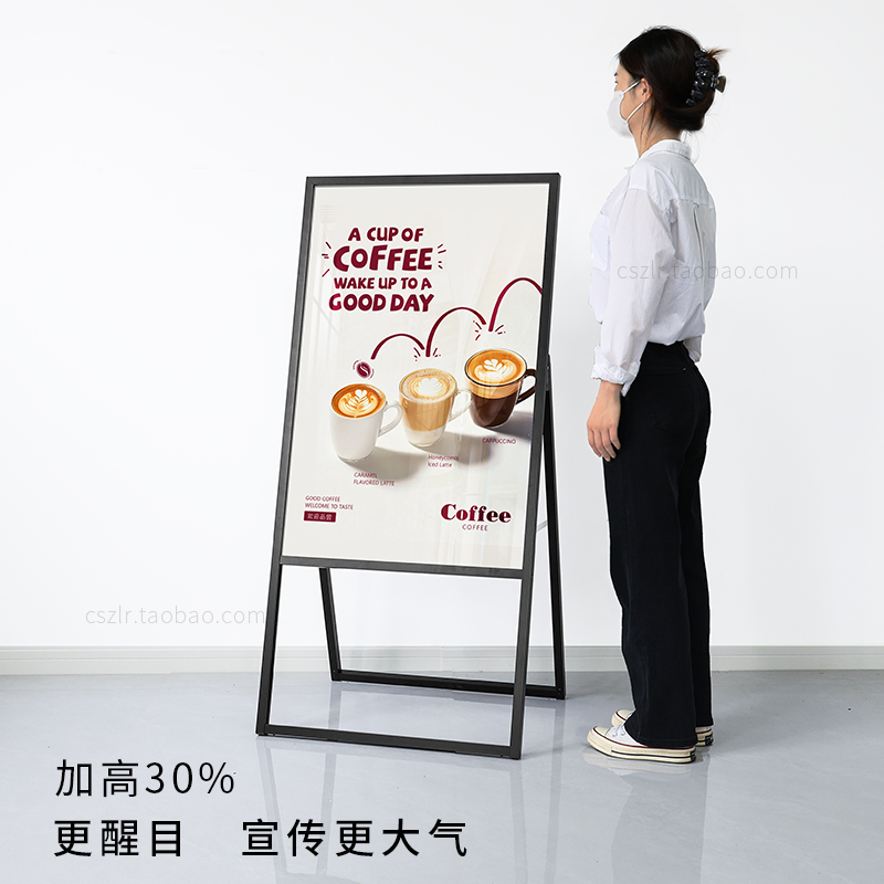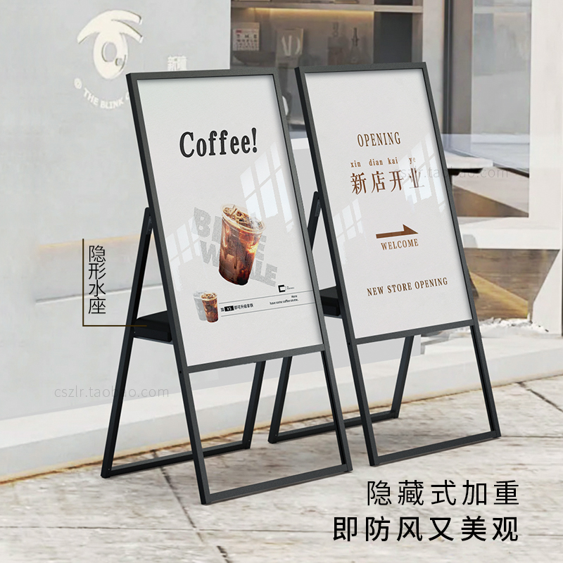 咖啡奶茶店广告牌KT板落地三角展示架海报门口立牌户外防风水牌