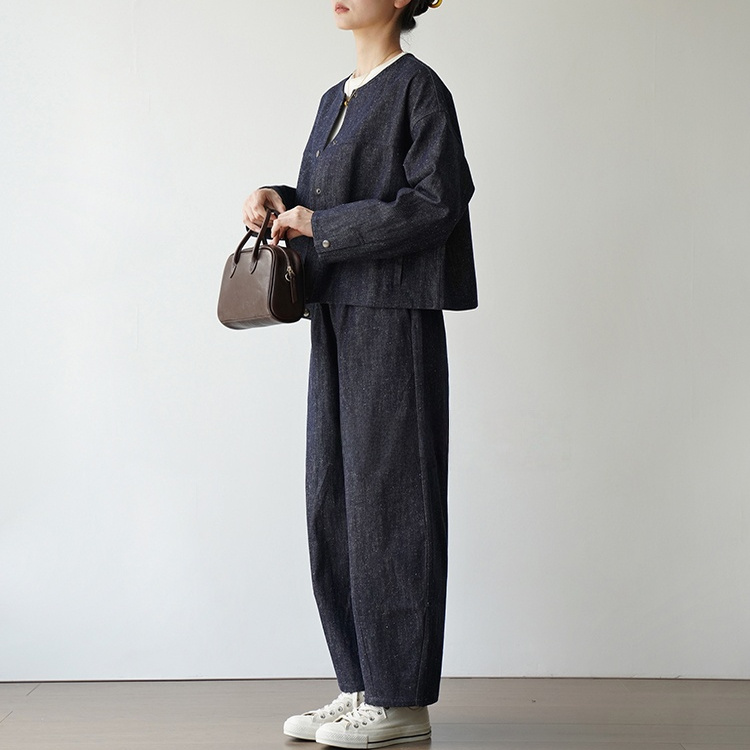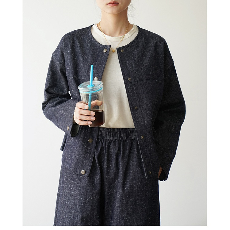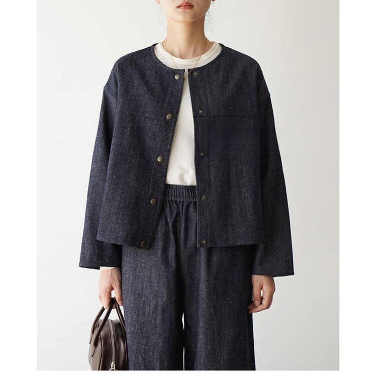 素衣彼时3629春秋日系简约女牛仔套装纸样圆领外套九分灯笼裤样板