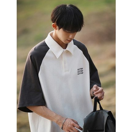 Tim Peake短袖polo衫男款美式复古撞色插肩袖半袖体恤T193