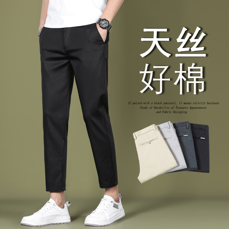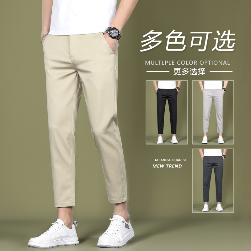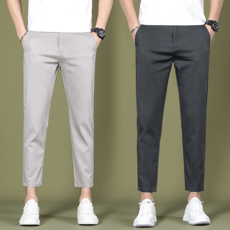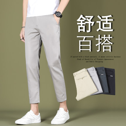 夏季男士裤子九分裤修身小脚休闲裤冰丝薄款9分男生小西裤 显年轻