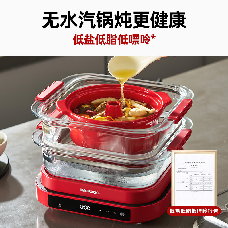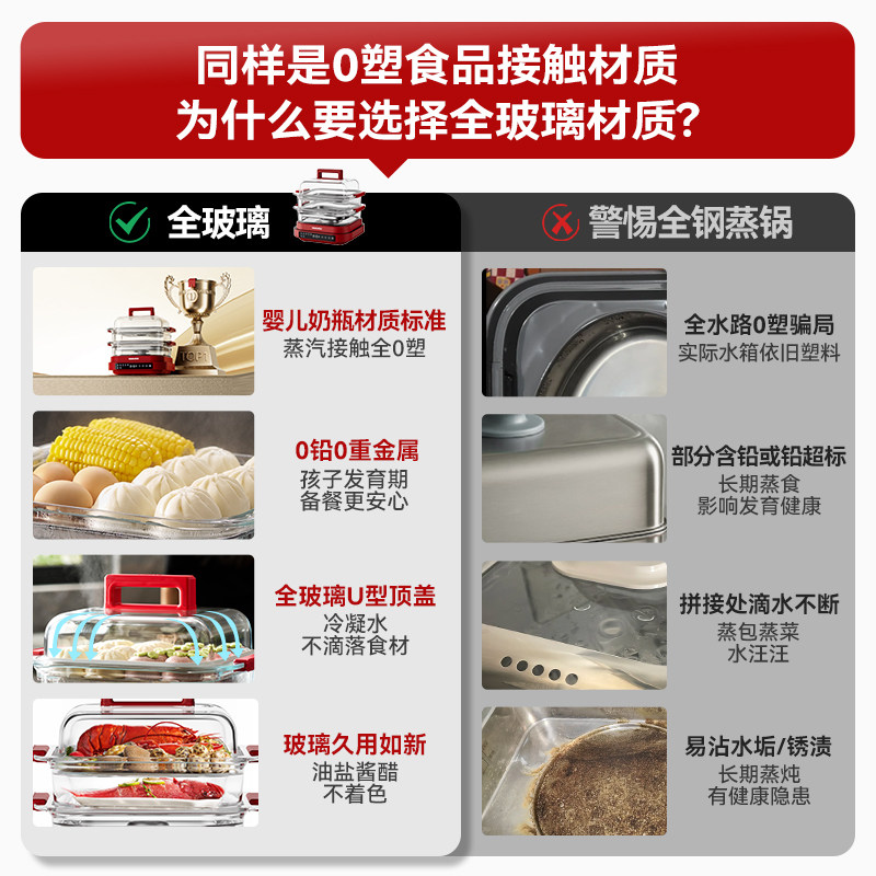 大宇万食玻璃电蒸锅多功能家用三层蒸煮一体锅家用可拆洗蒸汽锅