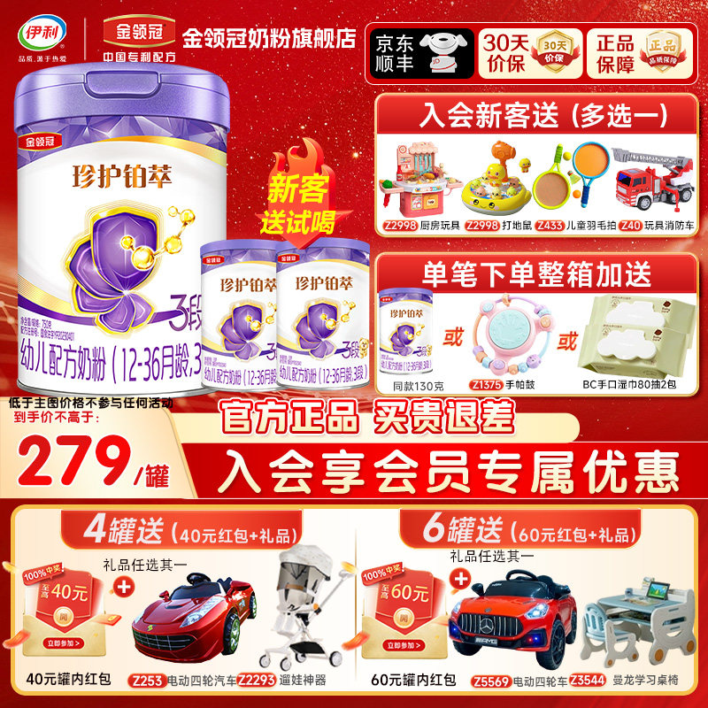伊利金领冠珍护铂萃3段婴幼儿A2β-酪蛋白乳铁蛋白牛奶粉750g