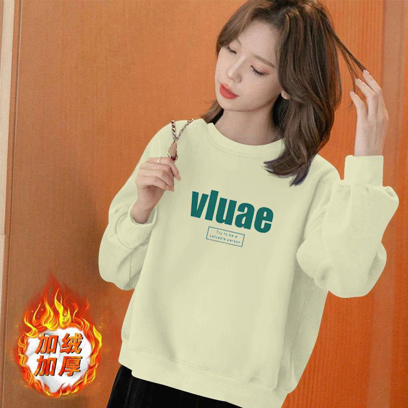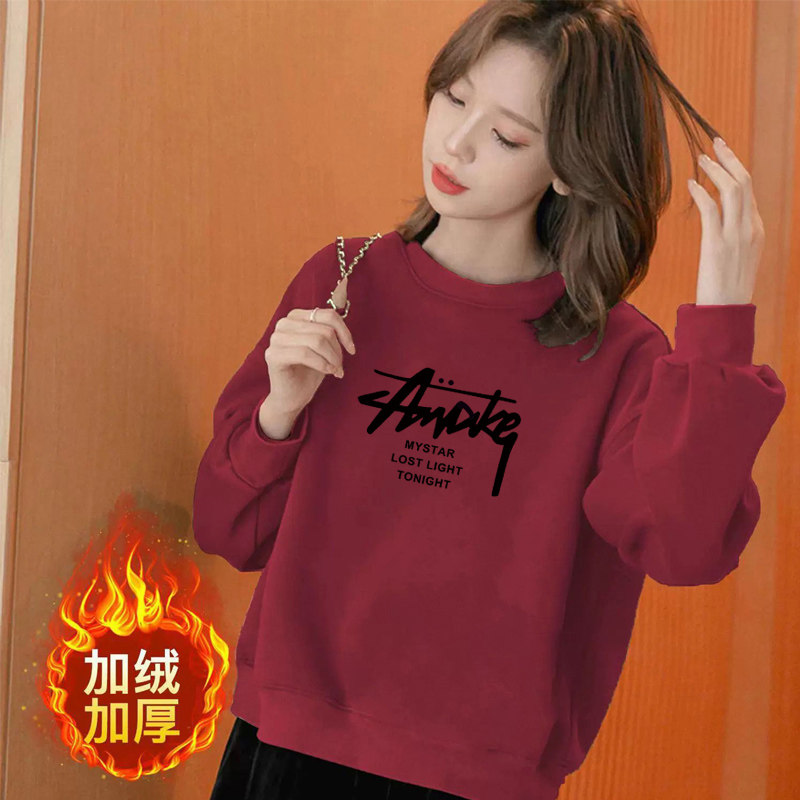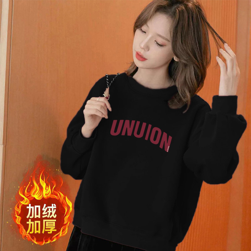 圆领套头短款卫衣女加绒加厚秋冬长袖上衣高腰宽松显瘦小个子外套