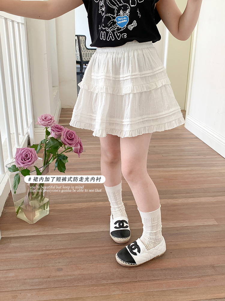 Yumi妈 童装夏儿童白色短裙女童宝宝防走光设计蛋糕半身裙 J014