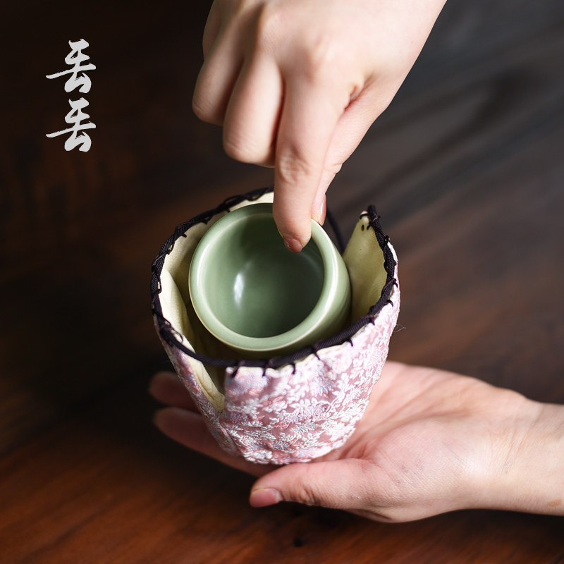 织锦缎加厚主人杯收纳布袋子刺绣功夫茶具便携旅行包装茶杯抽绳袋