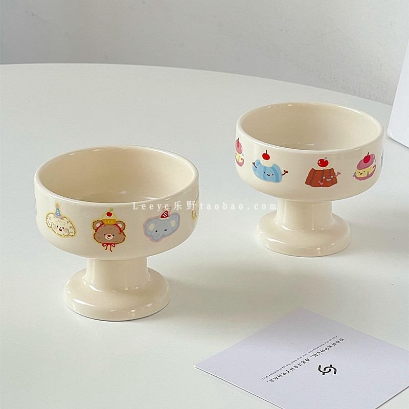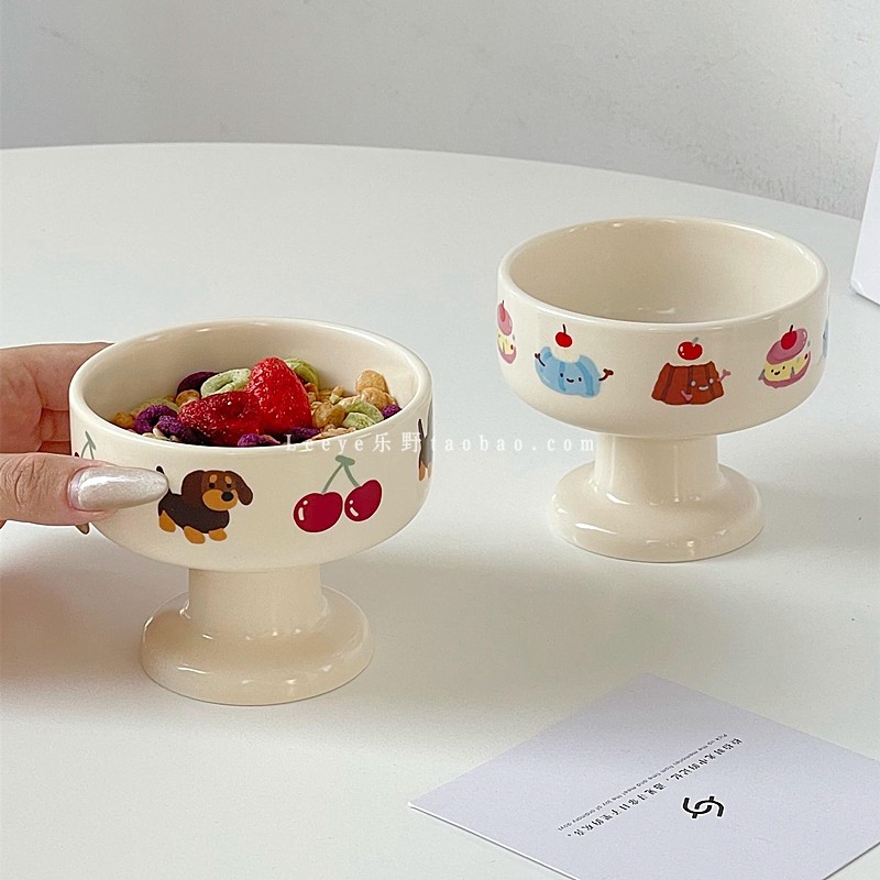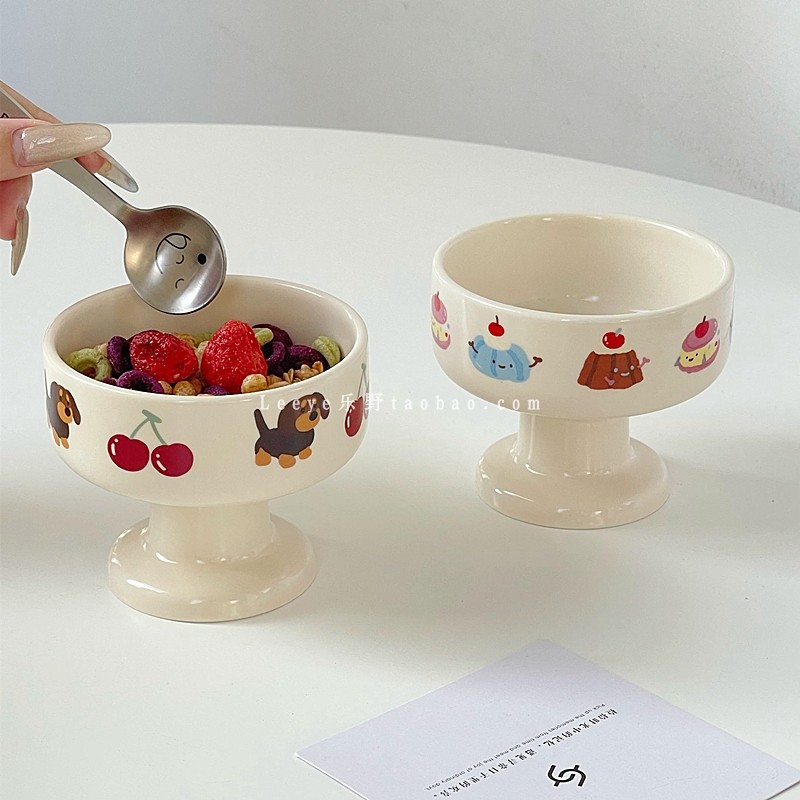 奶油风可爱樱桃蛋糕小狗冰淇淋碗韩式ins陶瓷高脚小吃水果酸奶碗