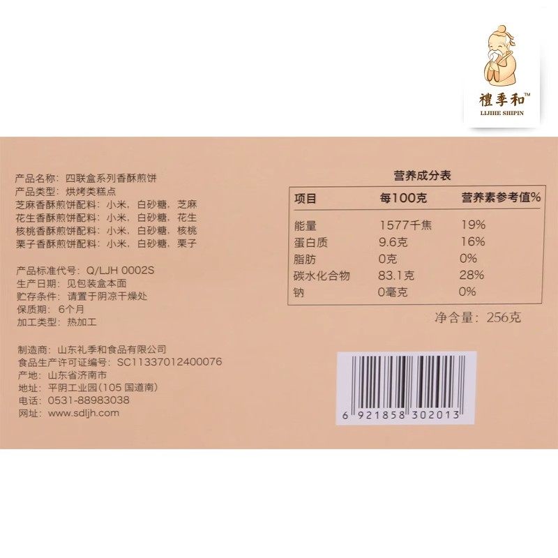 礼季和香酥掉渣煎饼四联盒山东济南特产纯手工糖酥饼256g礼盒装
