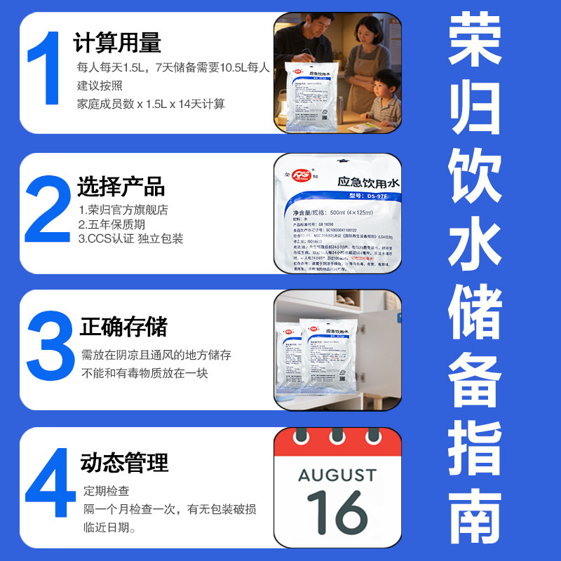 荣归户外旅行救援灾害矿井水家长期应急防灾储备饮用水袋装纯净水