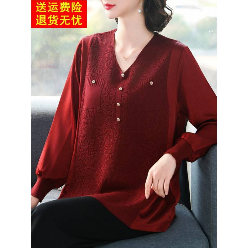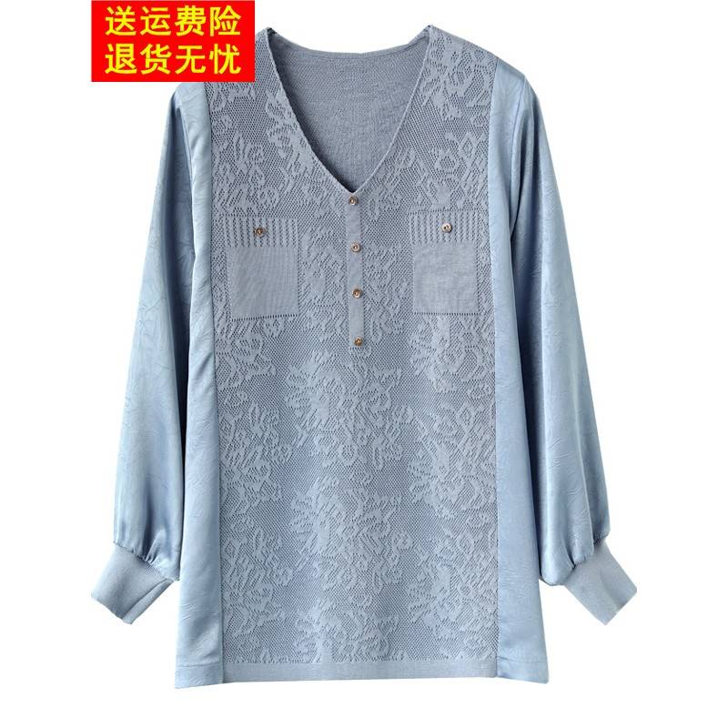 胖妈妈春秋上衣加肥特大码女装宽松冰丝T恤中老年洋气长袖针织衫