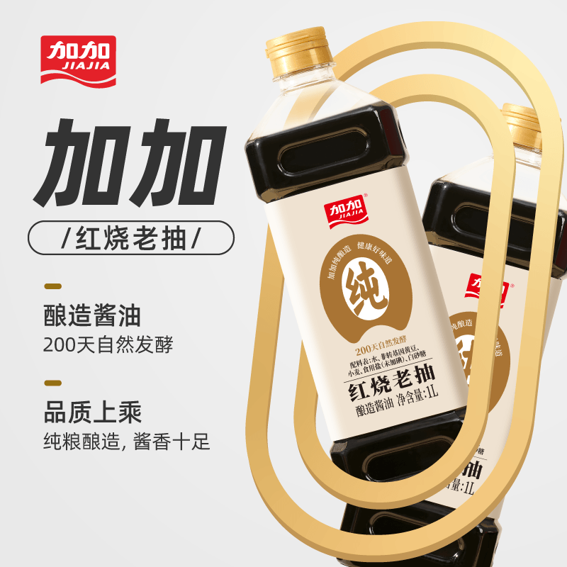 加加纯酿造红烧老抽1L200天黄豆酿造卤肉上色酱油无碘盐调味品