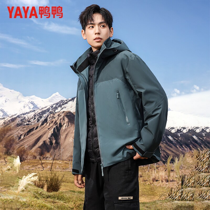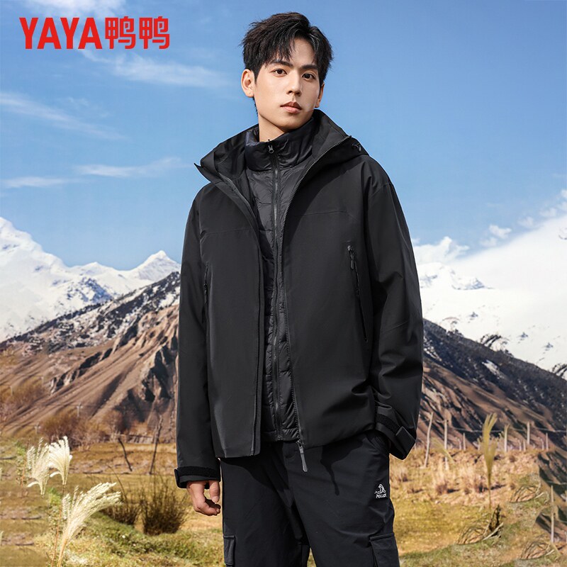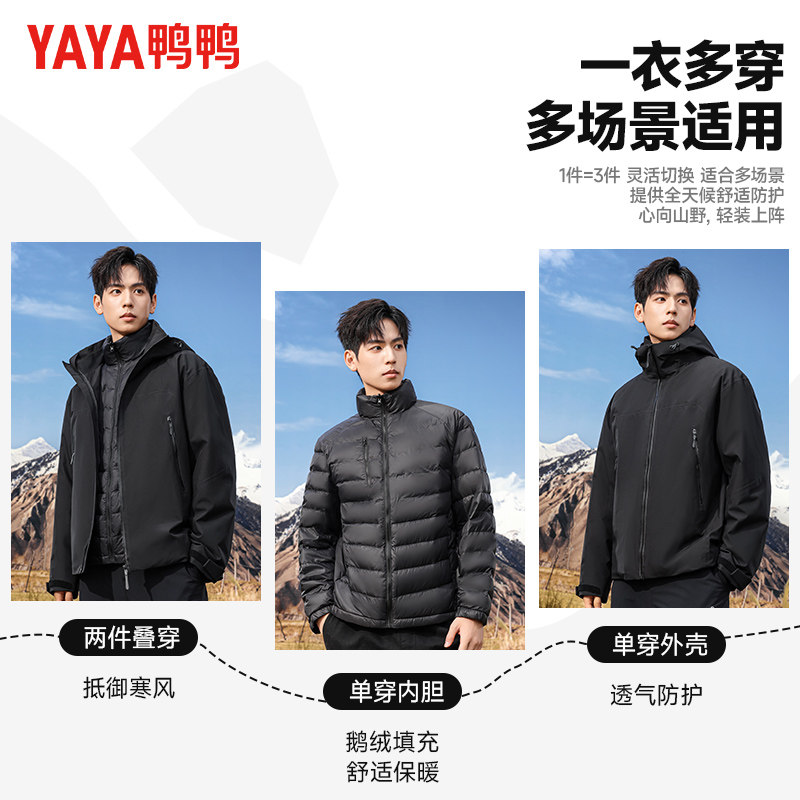 【鹅绒+一衣三穿】鸭鸭羽绒服男冬季可脱卸内胆户外三防冲锋衣男