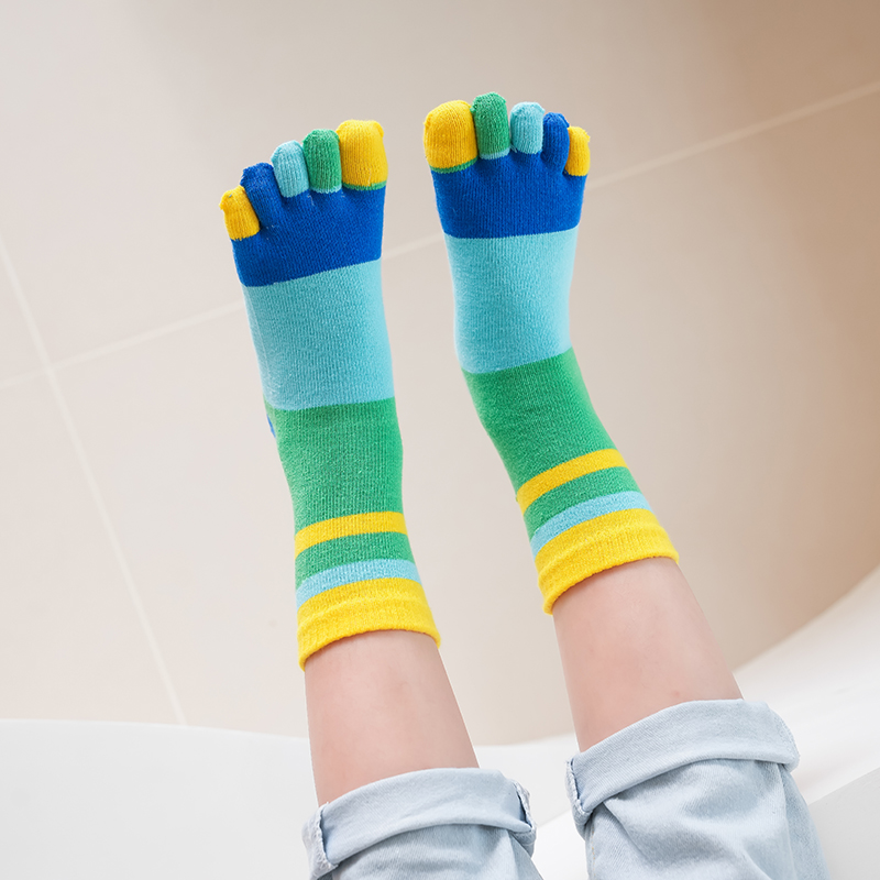 无骨五指袜儿童纯棉秋冬中筒男童分趾袜可爱女童宝宝矫正脚趾袜子