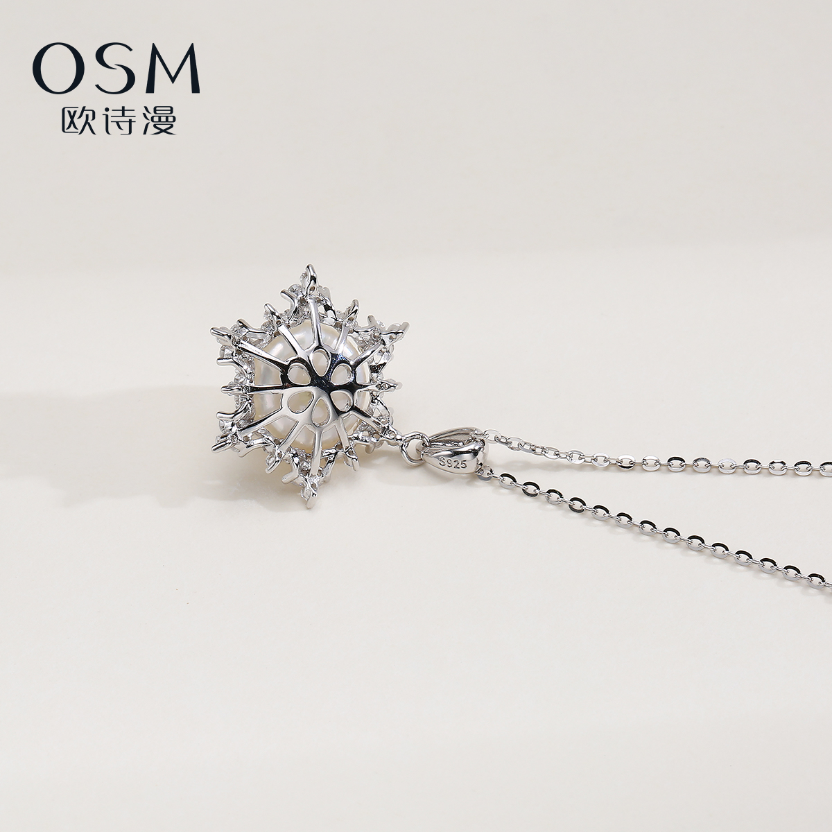 欧诗漫珠宝淡水珍珠项链白色大点位吊坠雪花造型气质女925银漫雪