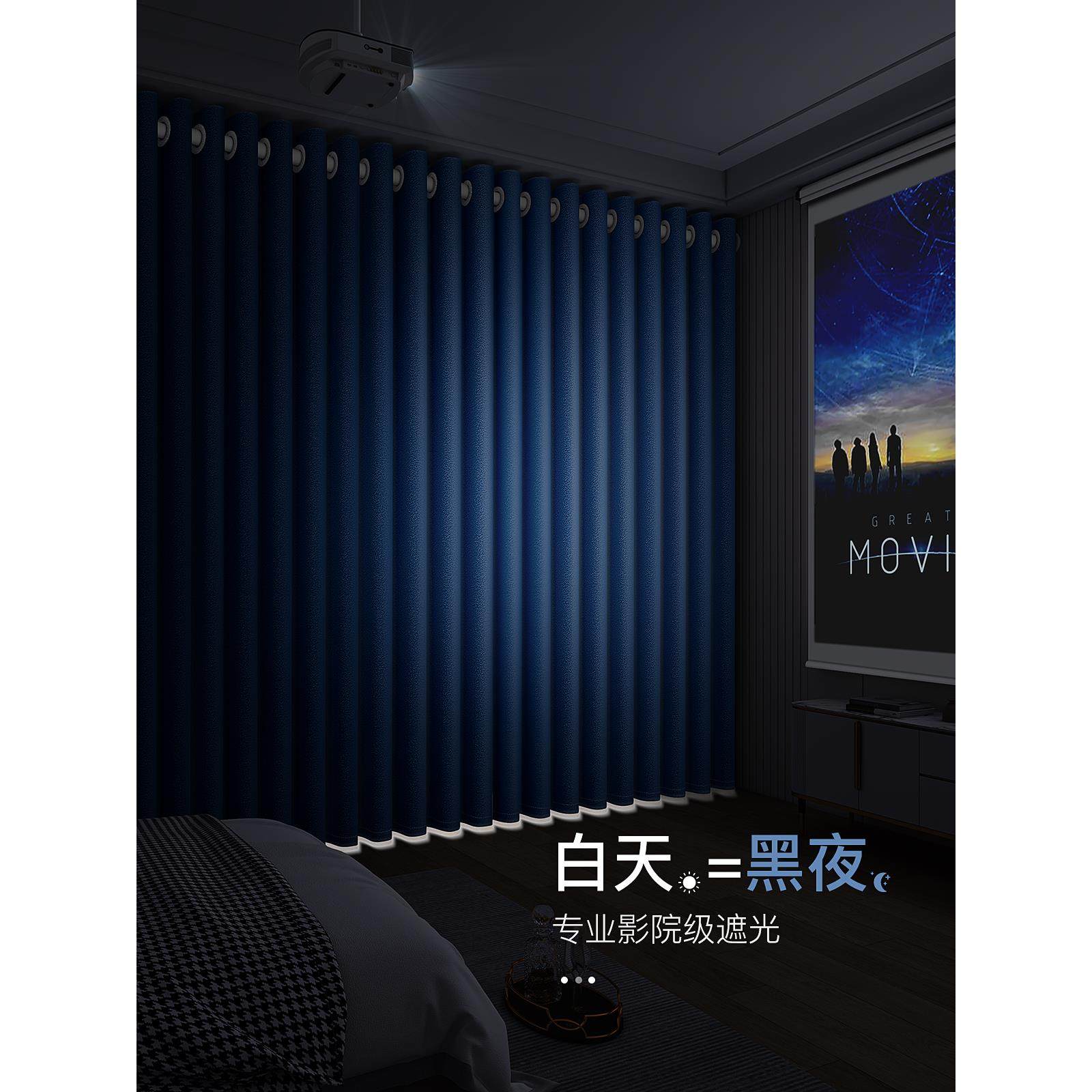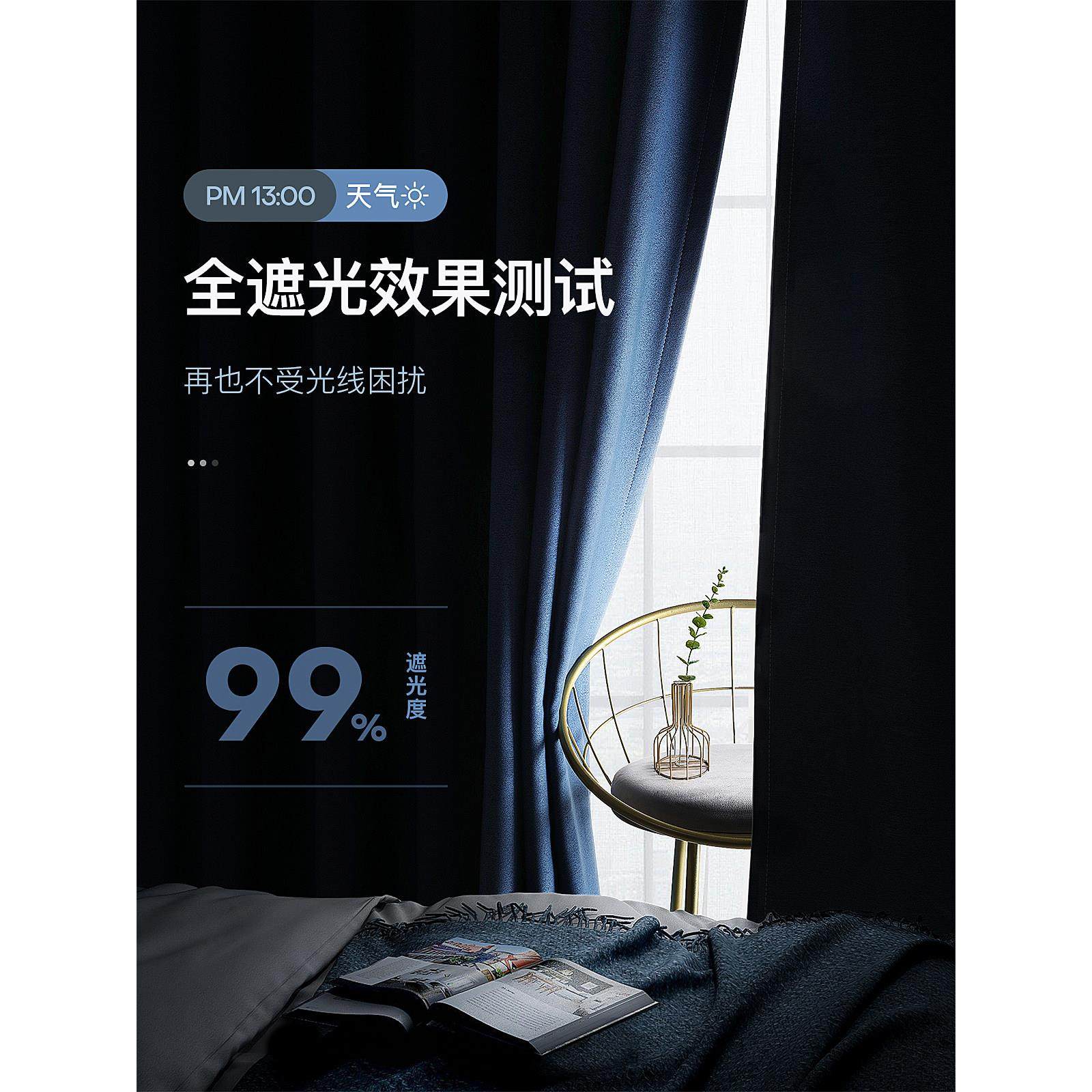 卧室全遮光隔热加厚窗帘布2023新款超强隔音挂钩式免打孔遮阳飘窗