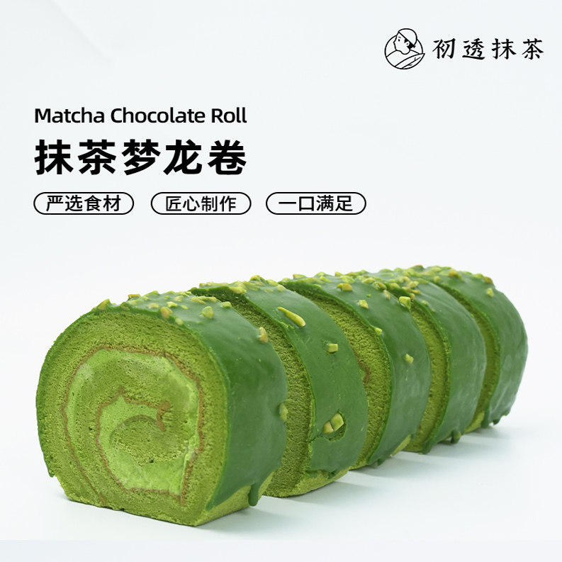 初透抹茶和风卷蛋糕卷毛巾卷抹茶奶酪层夹心手工糕点瑞士卷