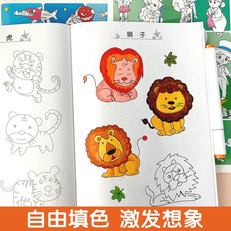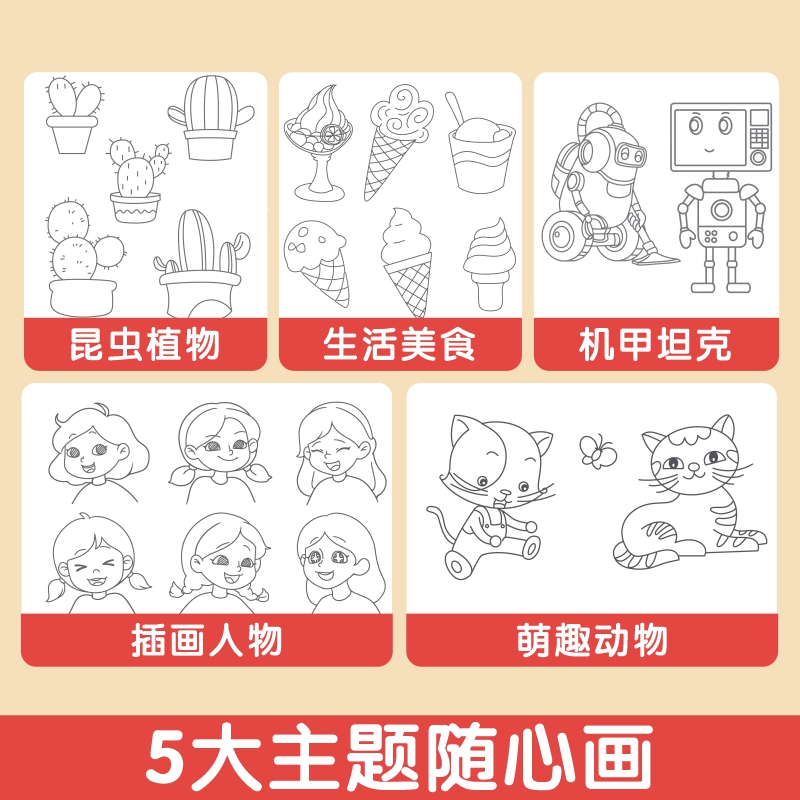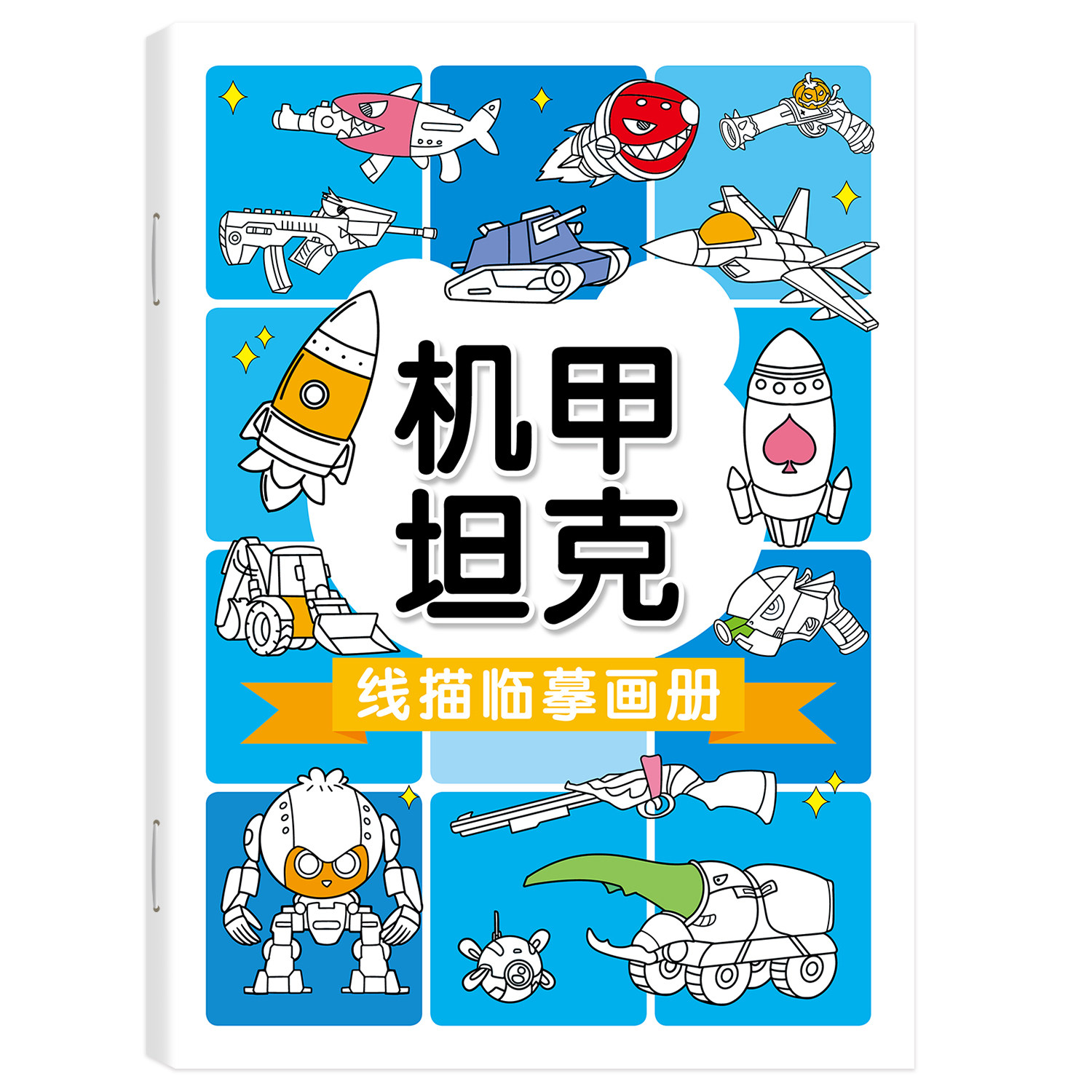 漫画入门手绘练习册描摹本填色画线稿儿童涂色书画册diy卡通简笔画幼儿艺术画画本绘画素材坦克战车美少女q版古风人物机甲勇士涂画