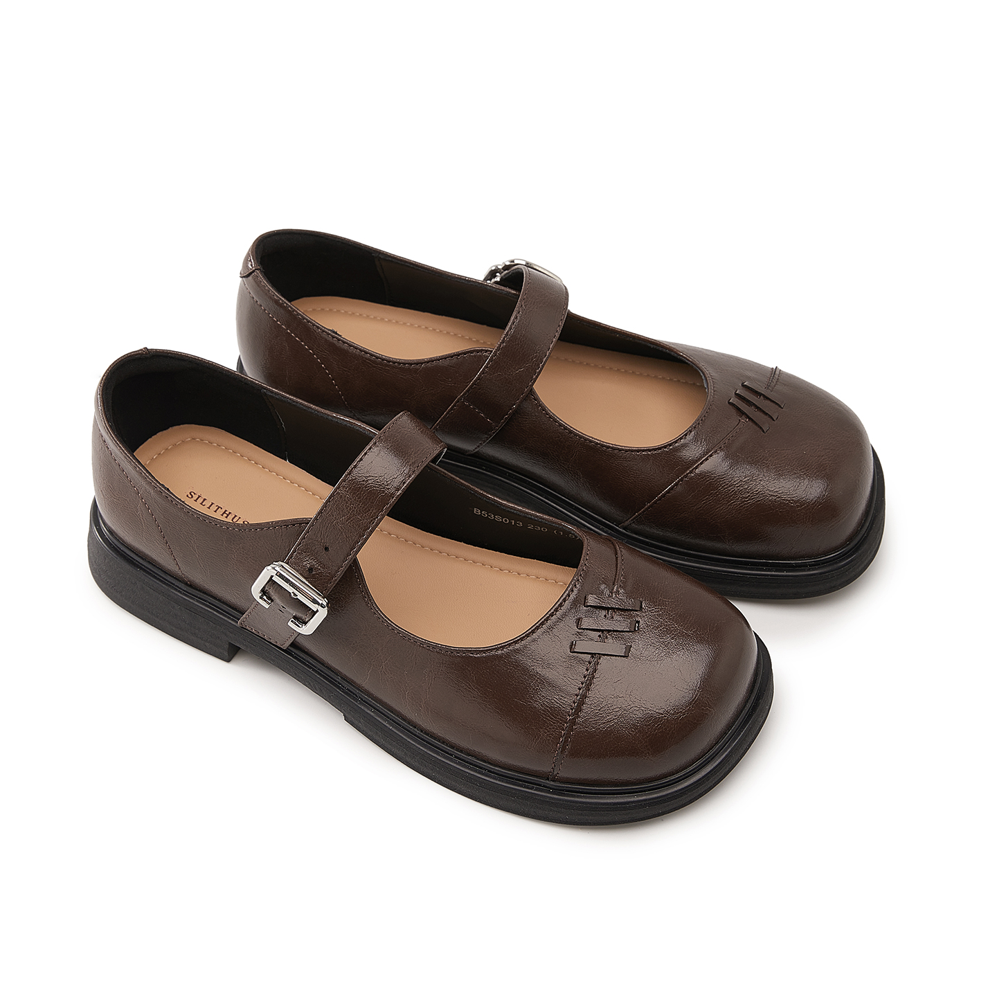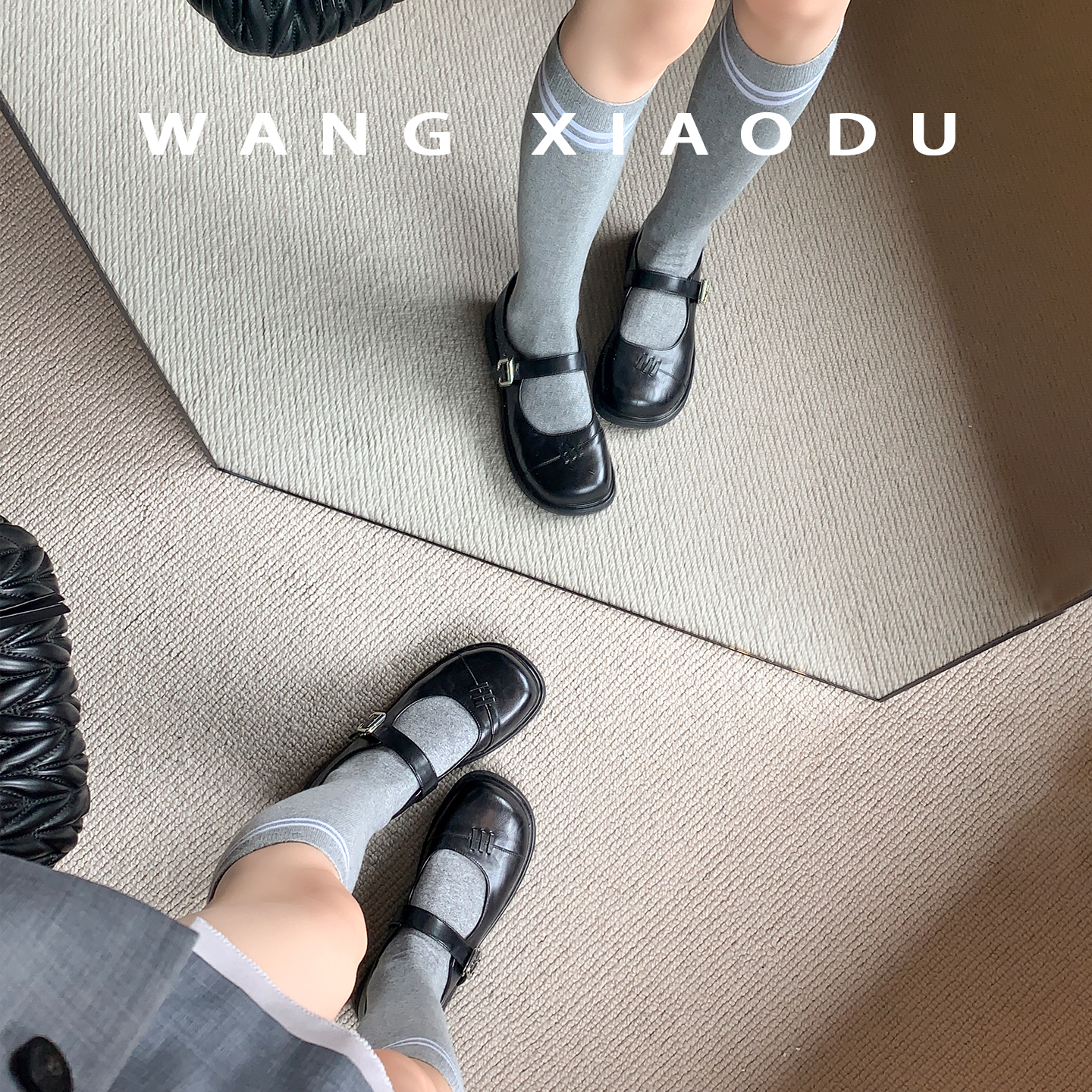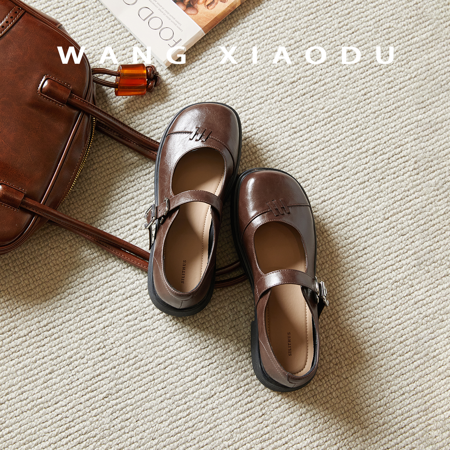 【王小毒】编织密码○圆头玛丽珍小皮鞋女一字扣法式粗跟浅口单鞋