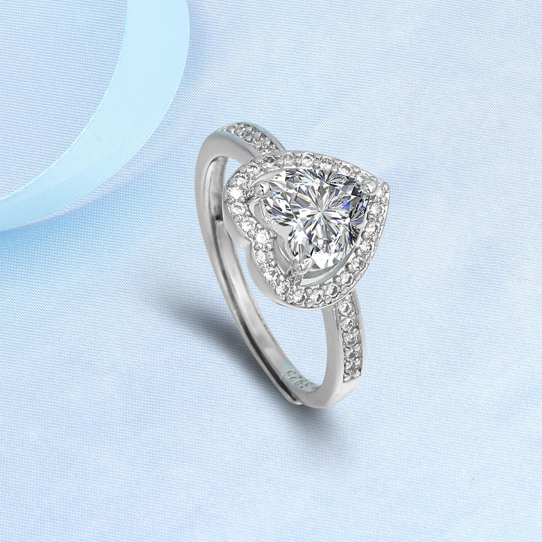 S925镀银少女爱心硞石镶钻甜美简约戒指结婚订婚宴会高级钻戒礼物