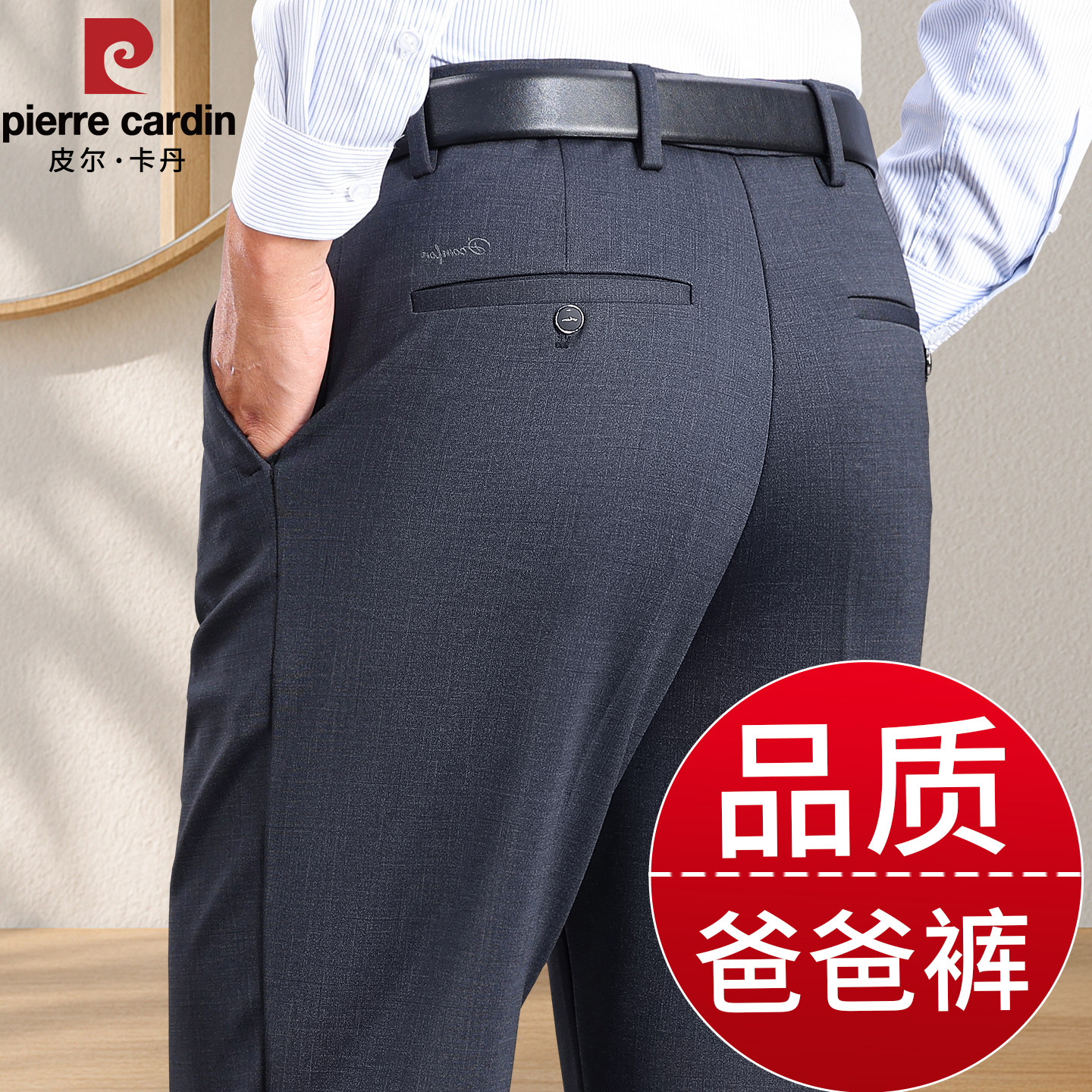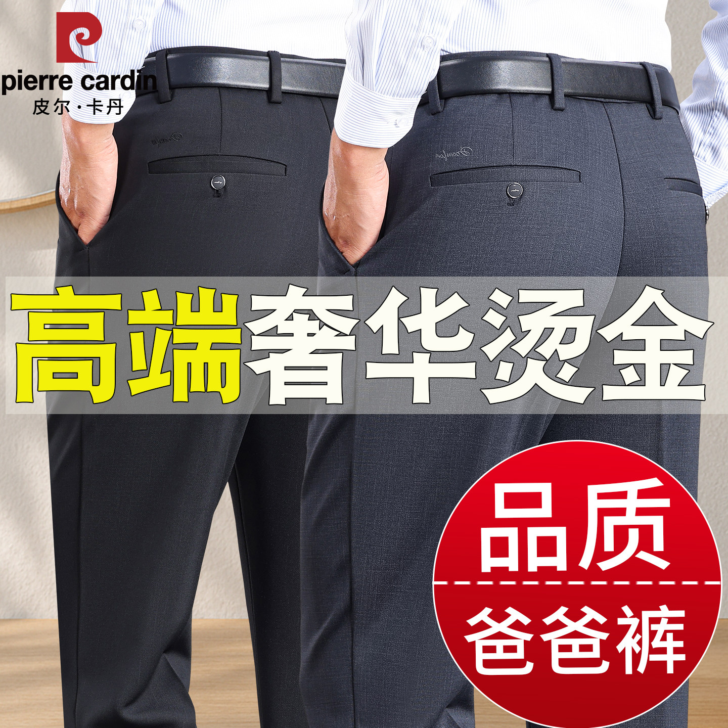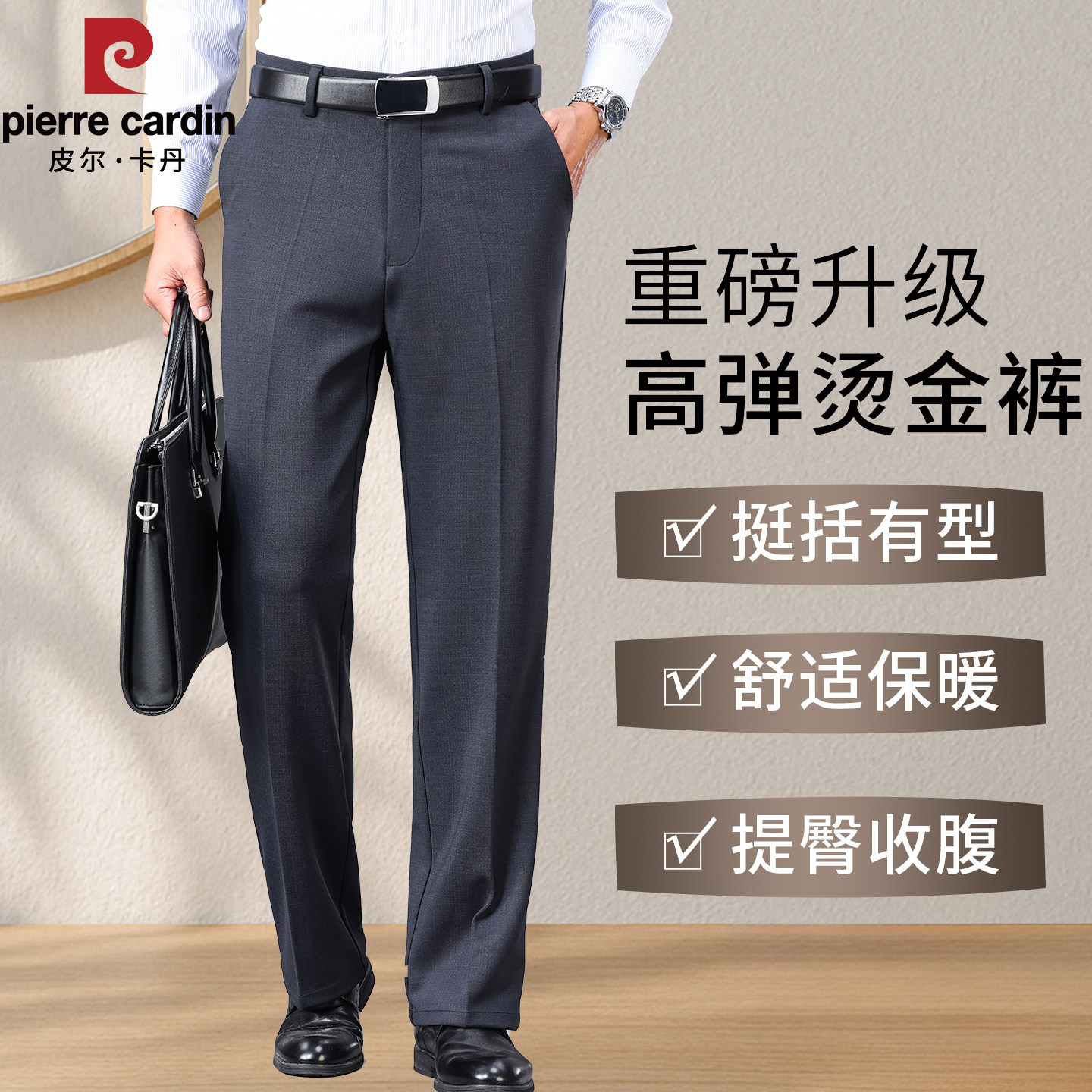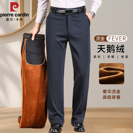 皮尔卡丹高端爸爸裤子秋冬款中年男士休闲裤冬装加绒男裤直筒西裤
