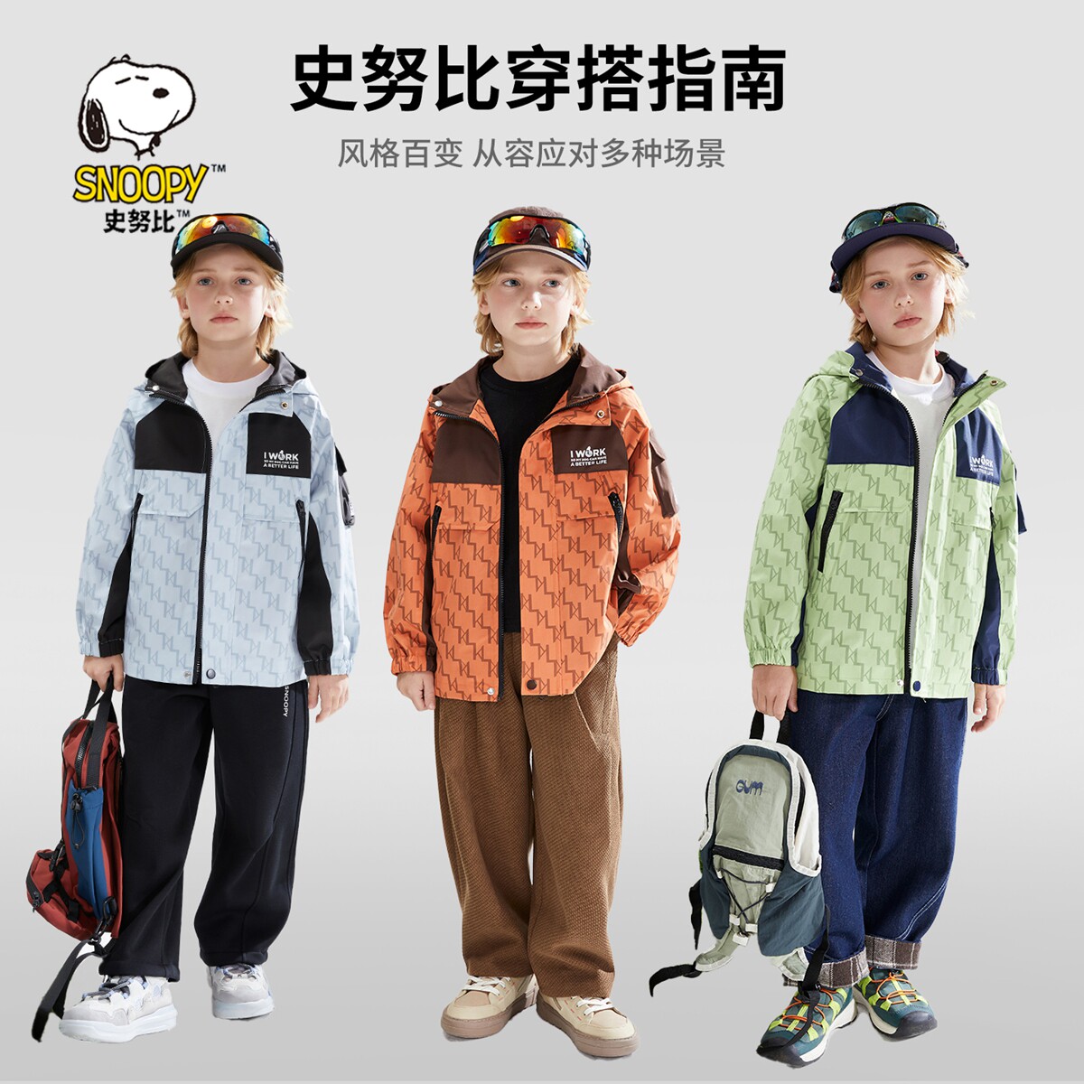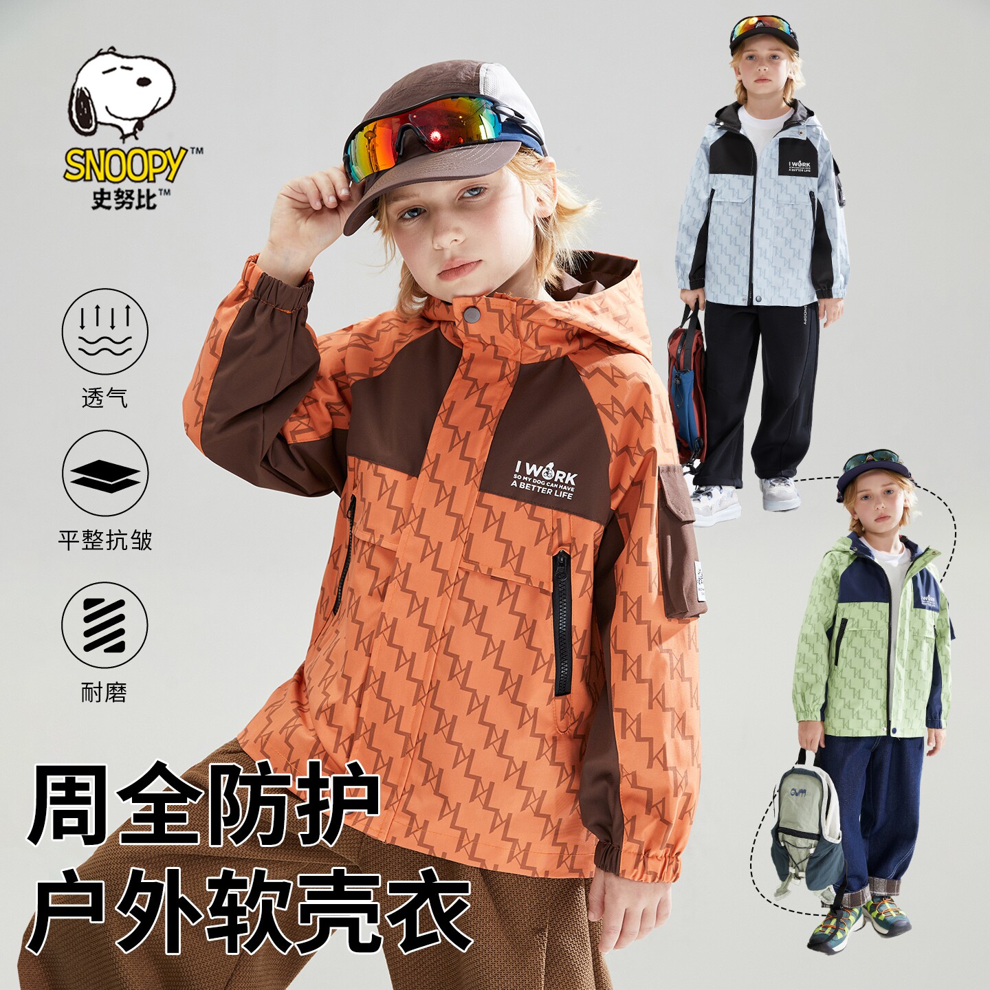 史努比防水软壳男童外套冲锋衣