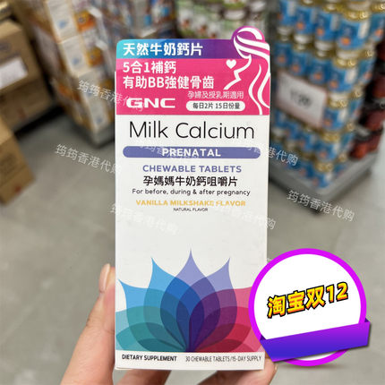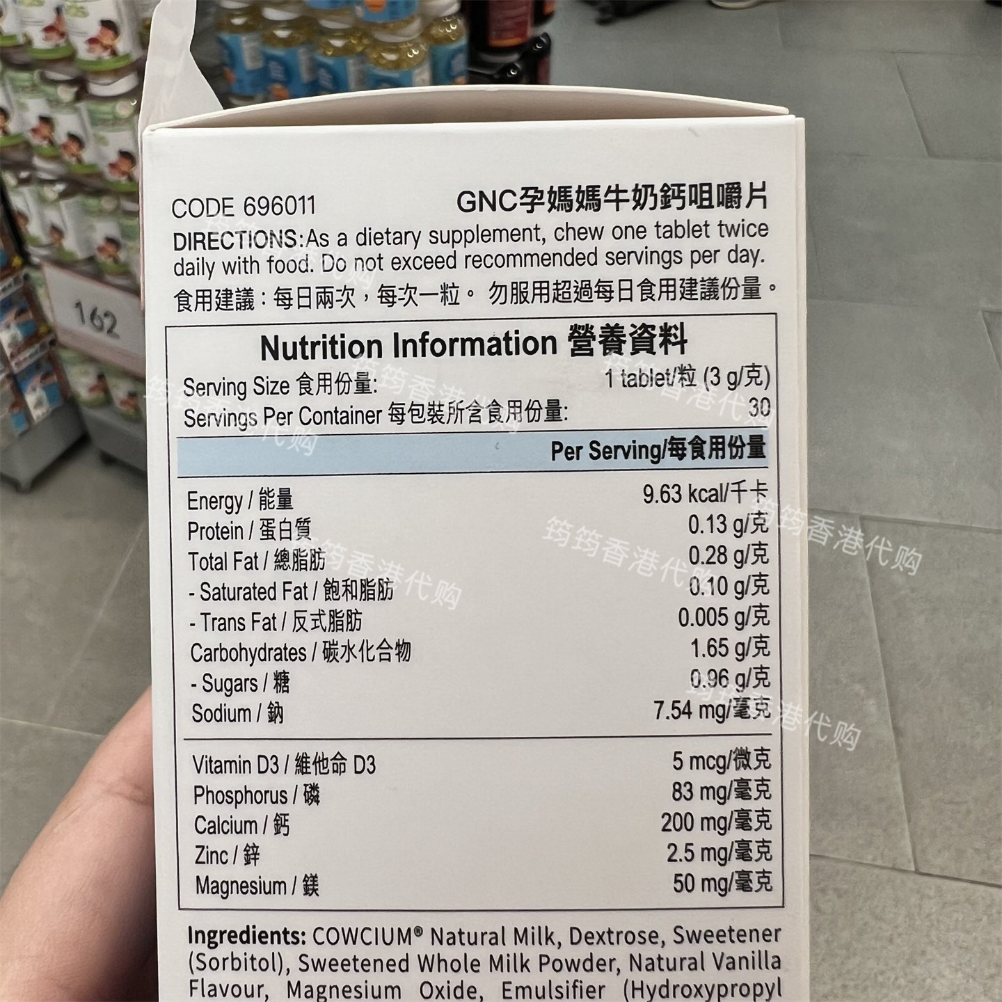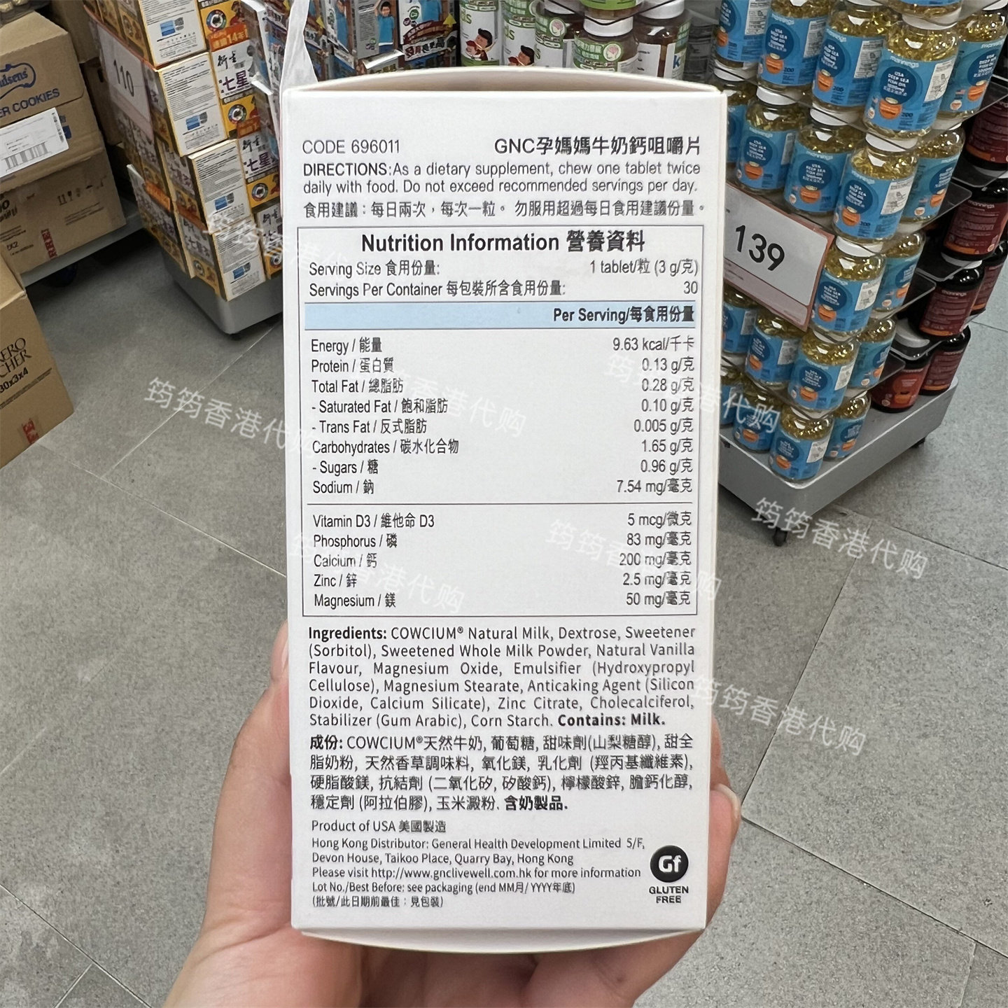 香港代购GNC健安喜孕妇妈妈牛奶钙30粒咀嚼片镁锌磷维生素D包邮