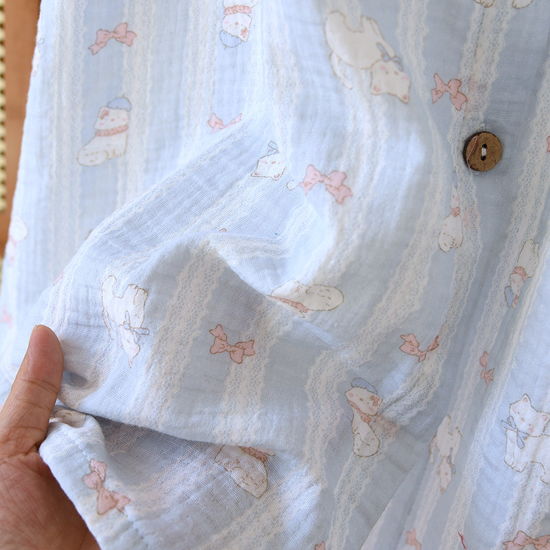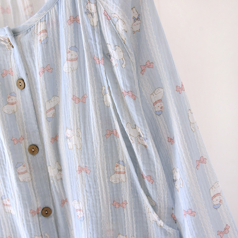100纯棉纱布孕妇带胸垫长袖睡裙女春秋待产后睡衣全棉月子哺乳裙