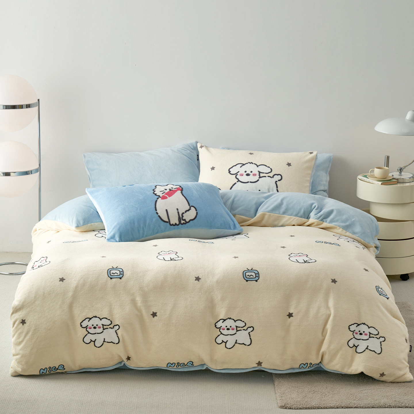 多喜爱卡通珊瑚绒四件套冬季暖绒加厚保暖套件床单被套三件套小狗