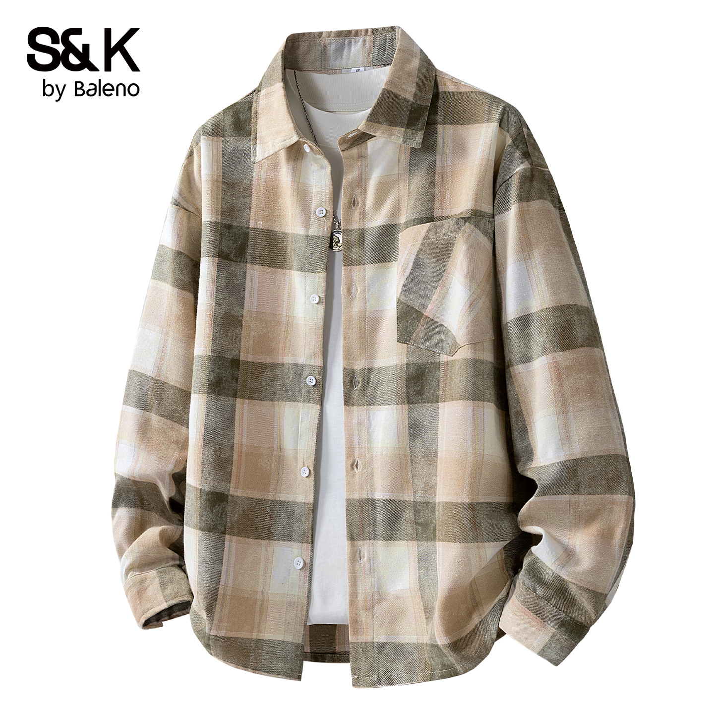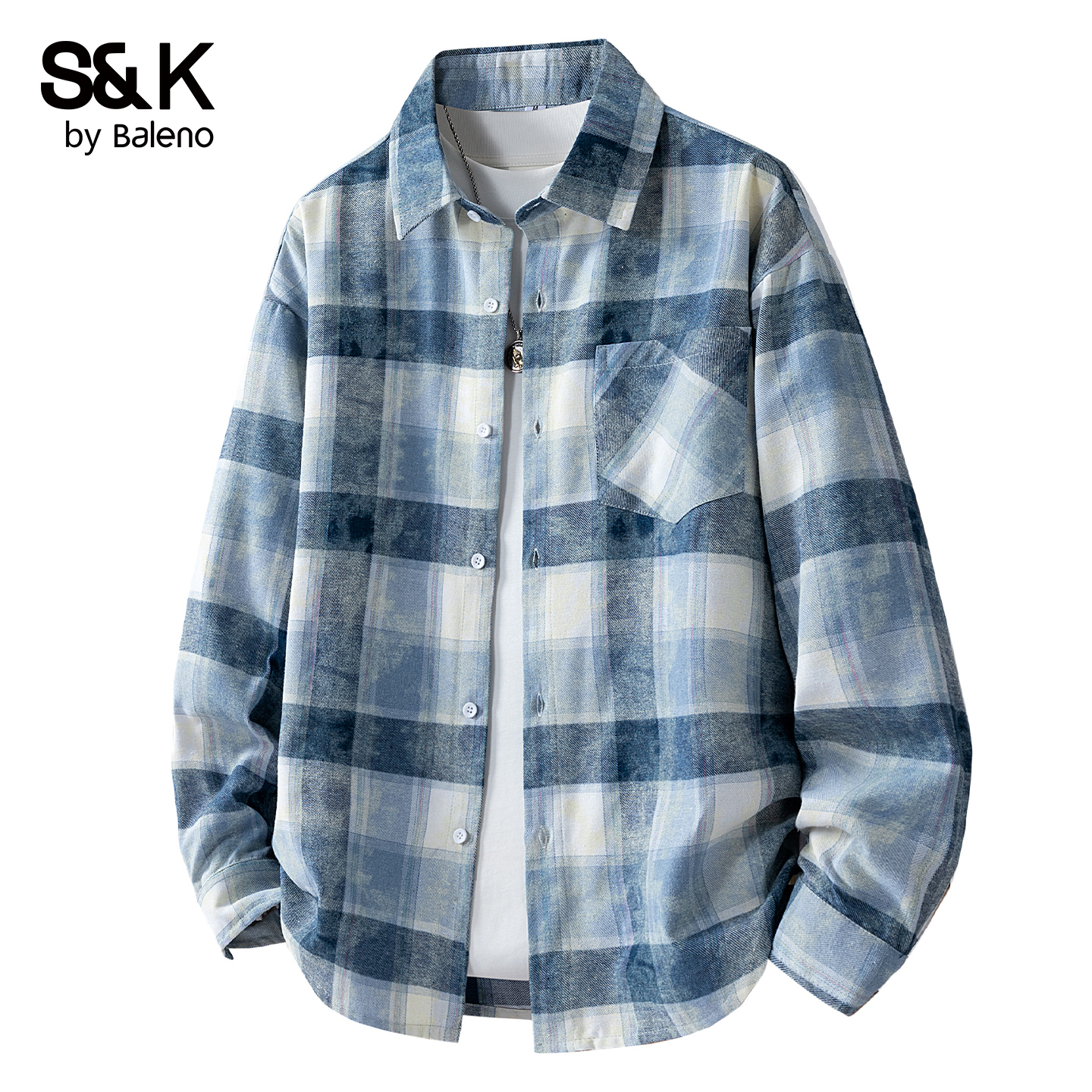 班尼路SK潮牌青年格子衬衫男秋季新款长袖衬衣休闲宽松男士外套MS