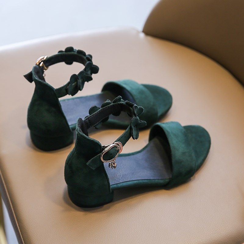 小女孩高跟凉鞋夏季百搭女童公主鞋花朵时尚韩版露趾黑色儿童鞋子