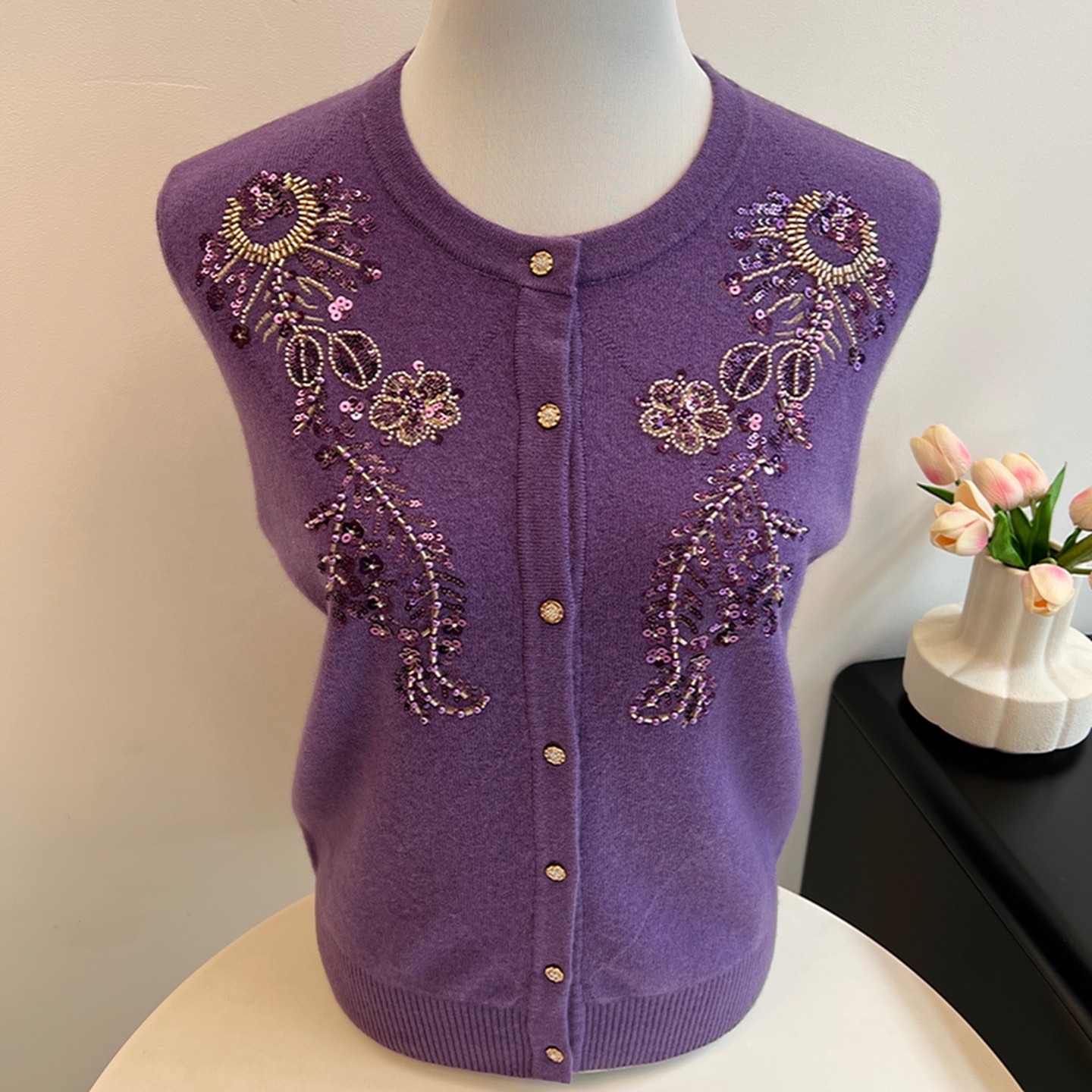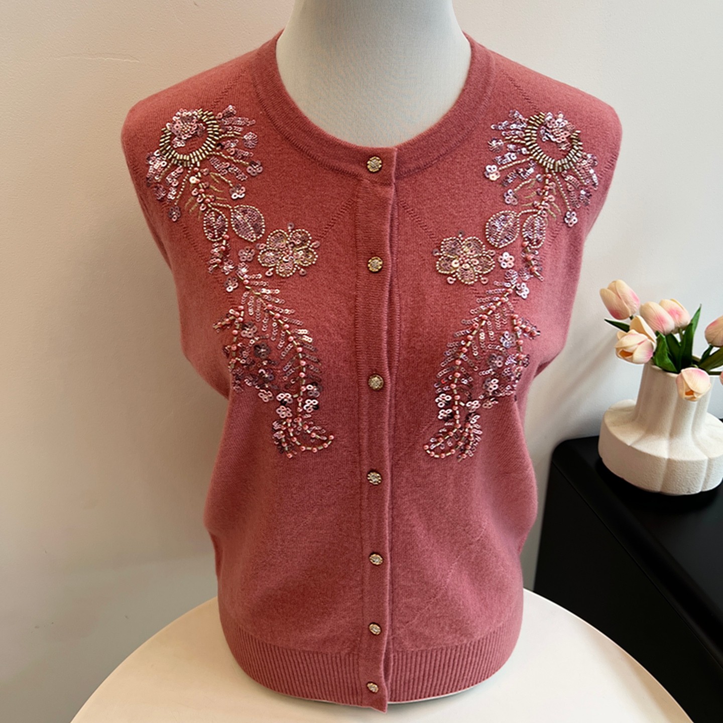 纯羊毛衫秋冬奶奶装针织开衫