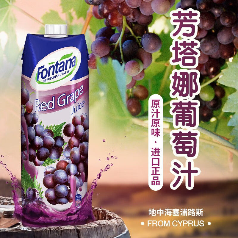 塞浦路斯fontana芳塔娜100%红葡萄汁1L*2果汁无添加0脂酒席饮料