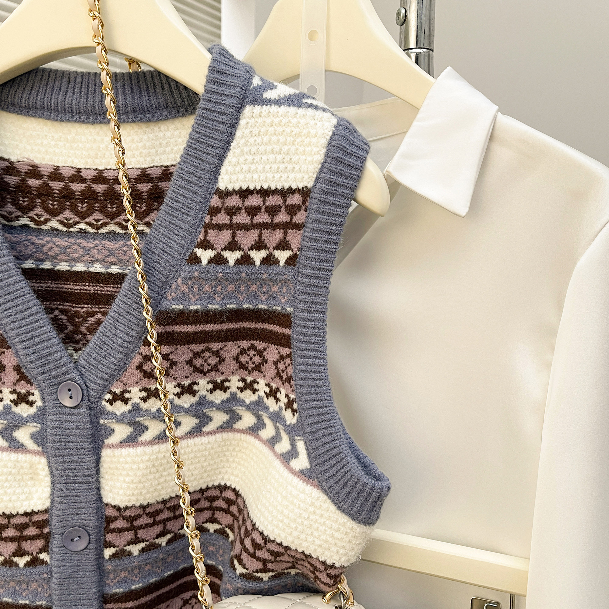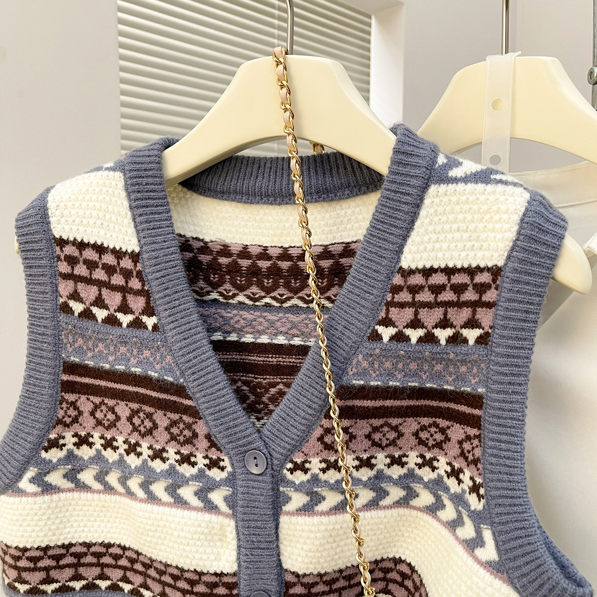 唐狮2025秋冬毛衣女文艺复古风V领开衫马甲外穿高级感百搭ins