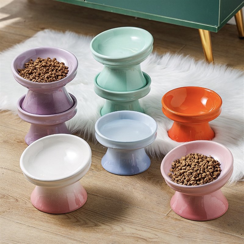 猫碗陶瓷宠物碗防打翻猫盆保护颈椎猫粮碗喝水碗狗碗高脚饭碗狗盆