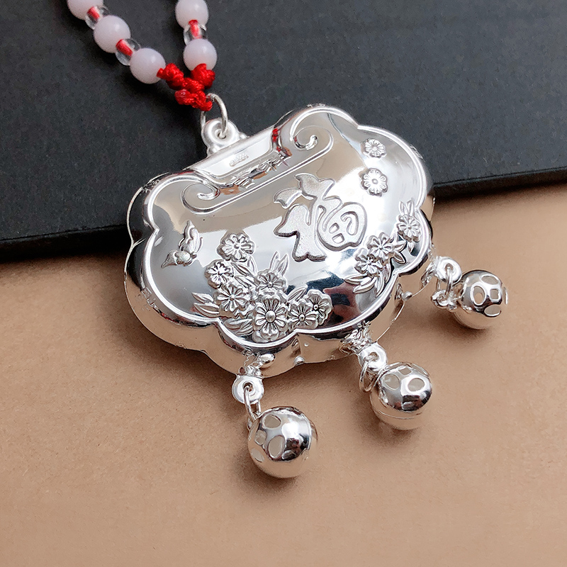 百天银锁银吊坠DIY编织配件999足银百福宝宝银锁纯银长命富贵锁2x