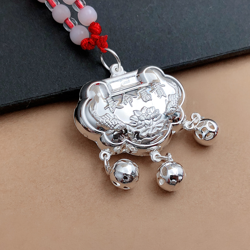 百天银锁银吊坠DIY编织配件999足