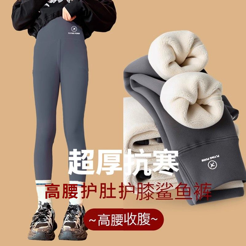 女童鲨鱼裤加绒冬2025新款儿童羊羔绒裤子女孩大童加厚打底裤外穿