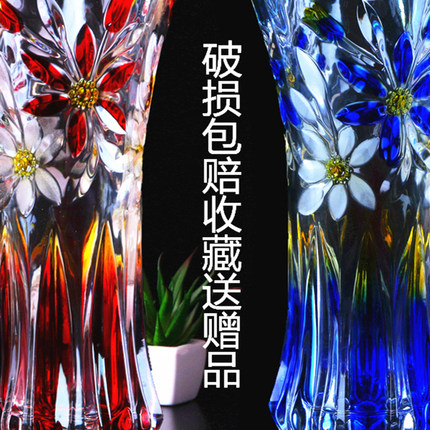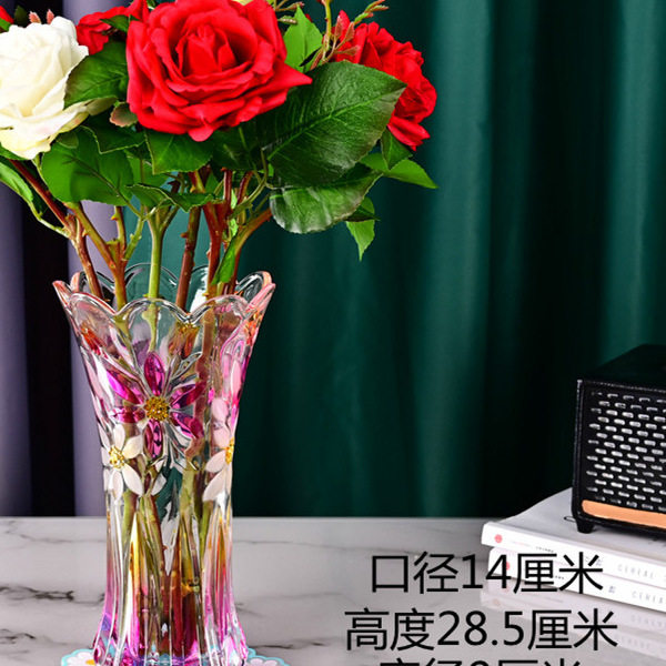 彩色手绘水晶玻璃花瓶家用水养富贵竹可以插鲜花玫瑰简约客厅摆放