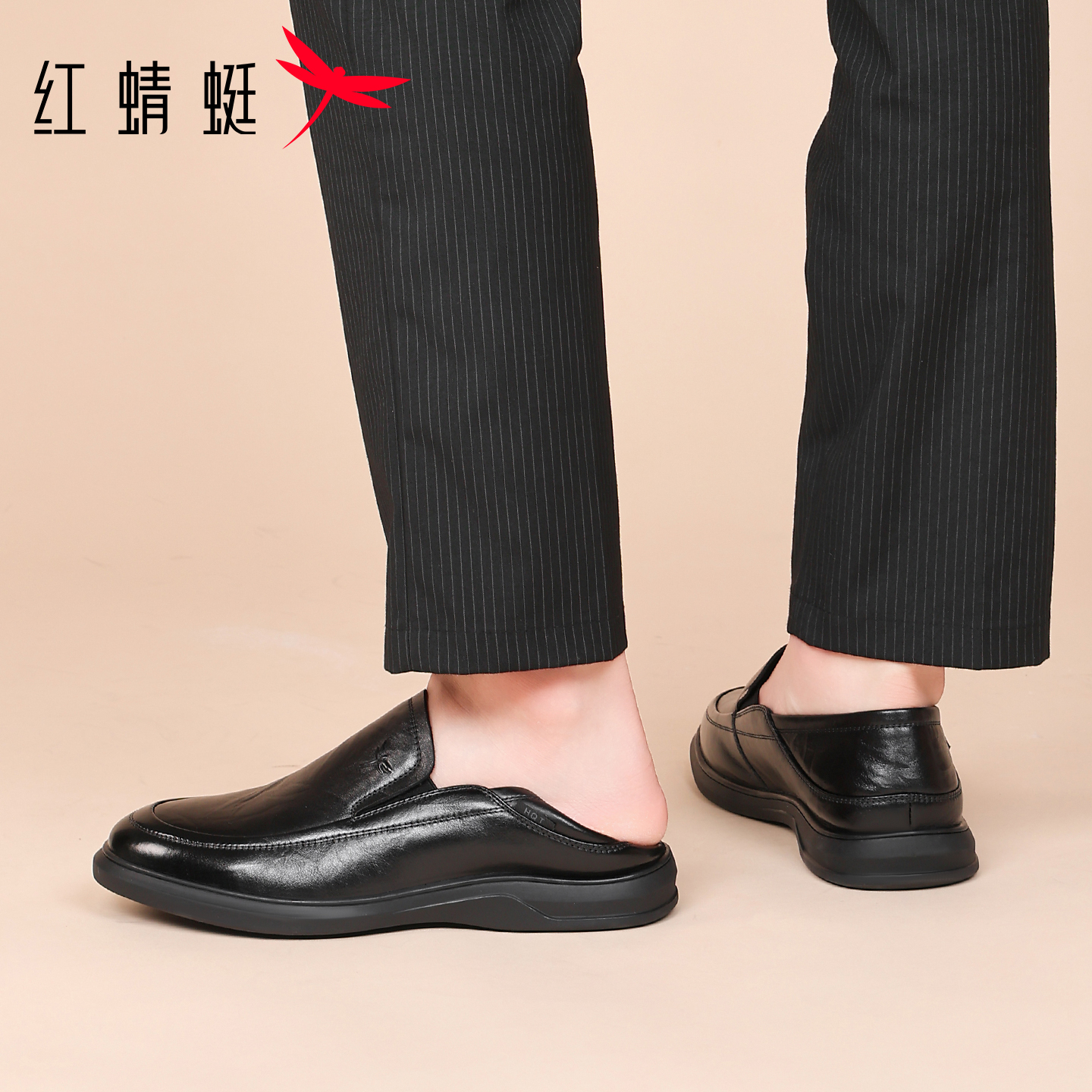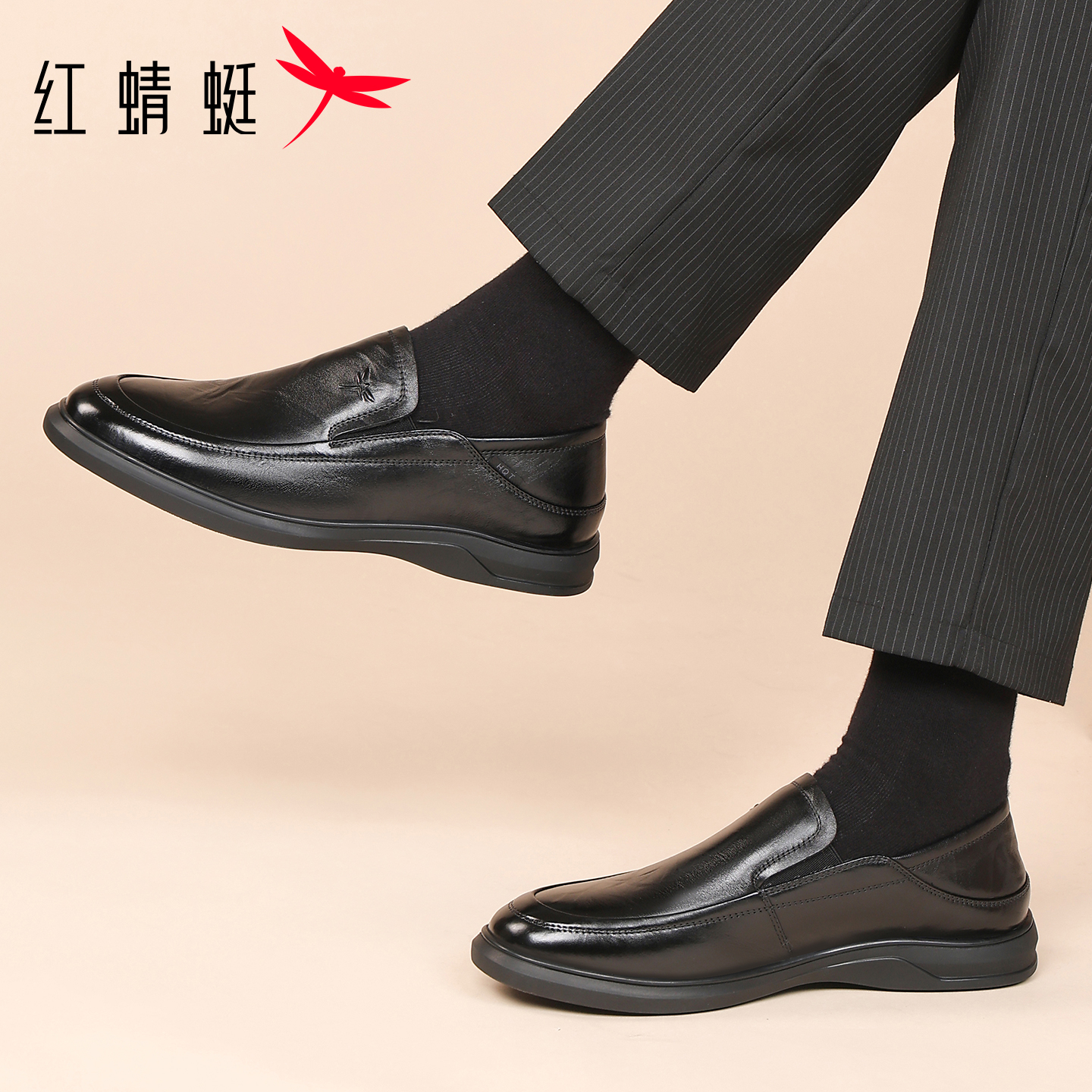 红蜻蜓男鞋秋季商务休闲皮鞋男真皮软底一脚蹬懒人爸爸鞋公务通勤