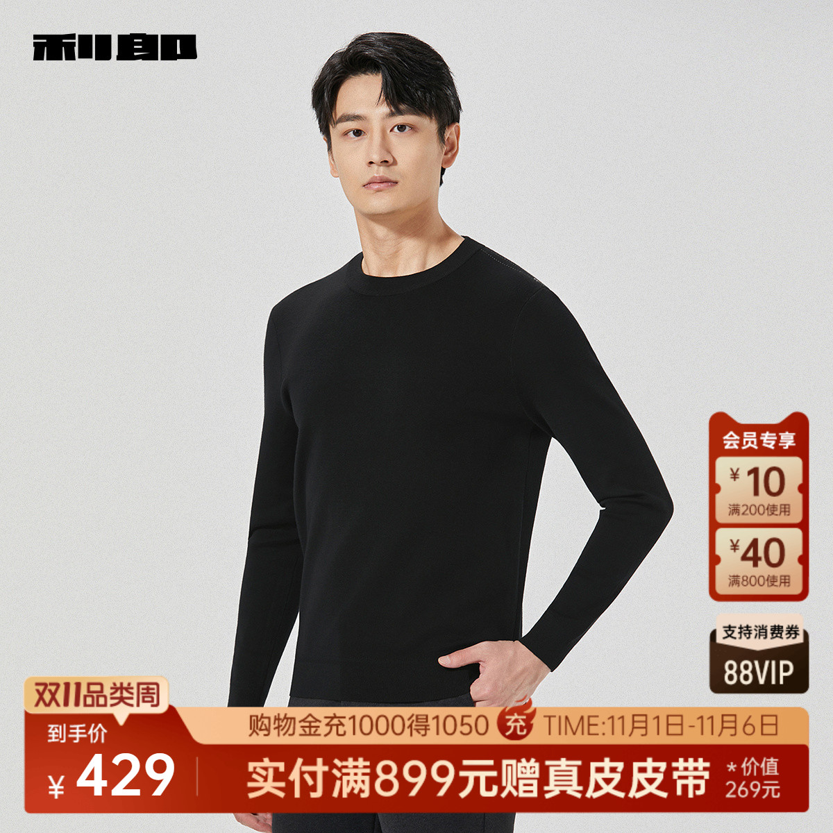 利郎官方休闲可机洗圆领修身毛衫